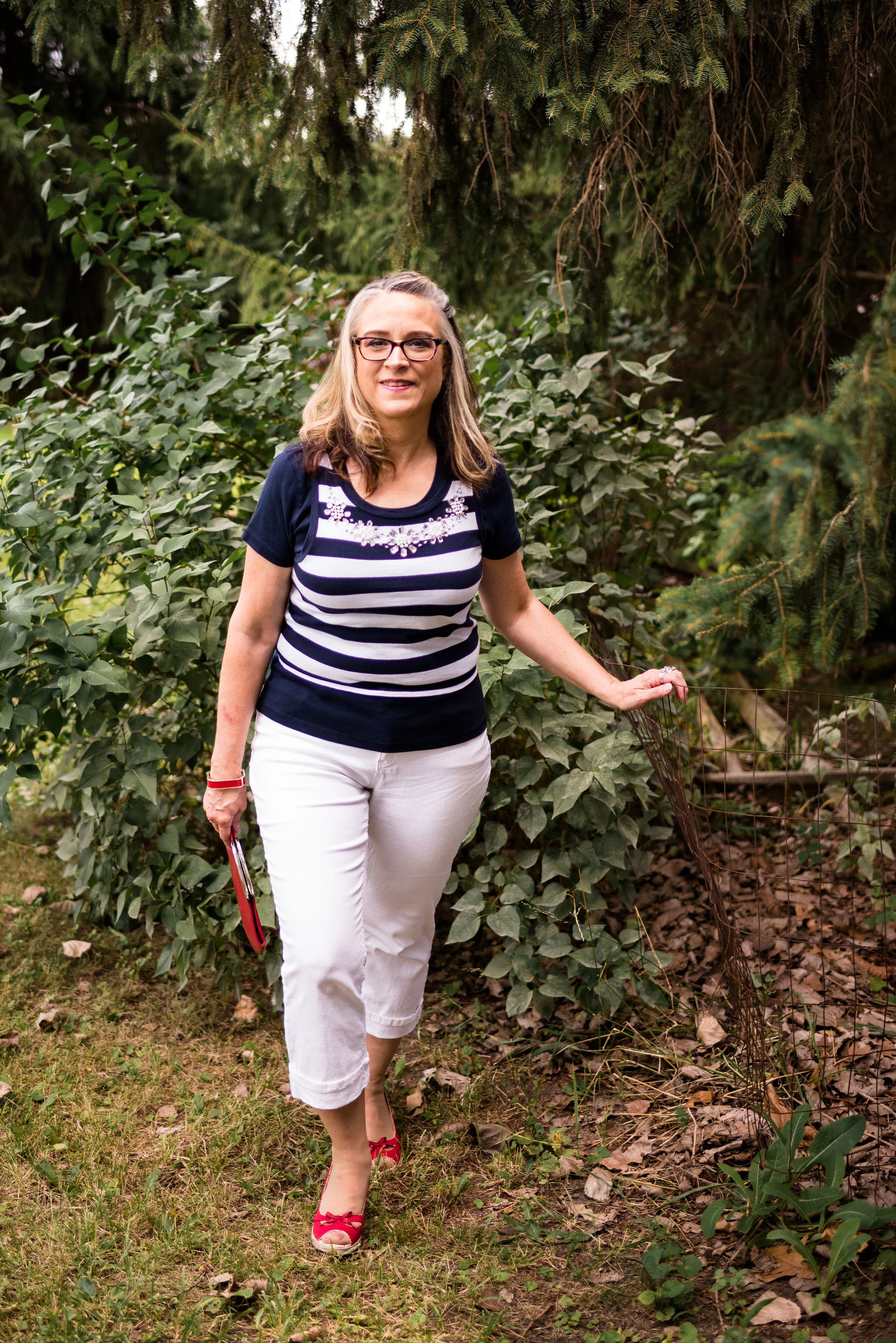 I wore a Christopher and Banks navy tee for my under layer, which went perfectly with the navy stripes on the crop top.