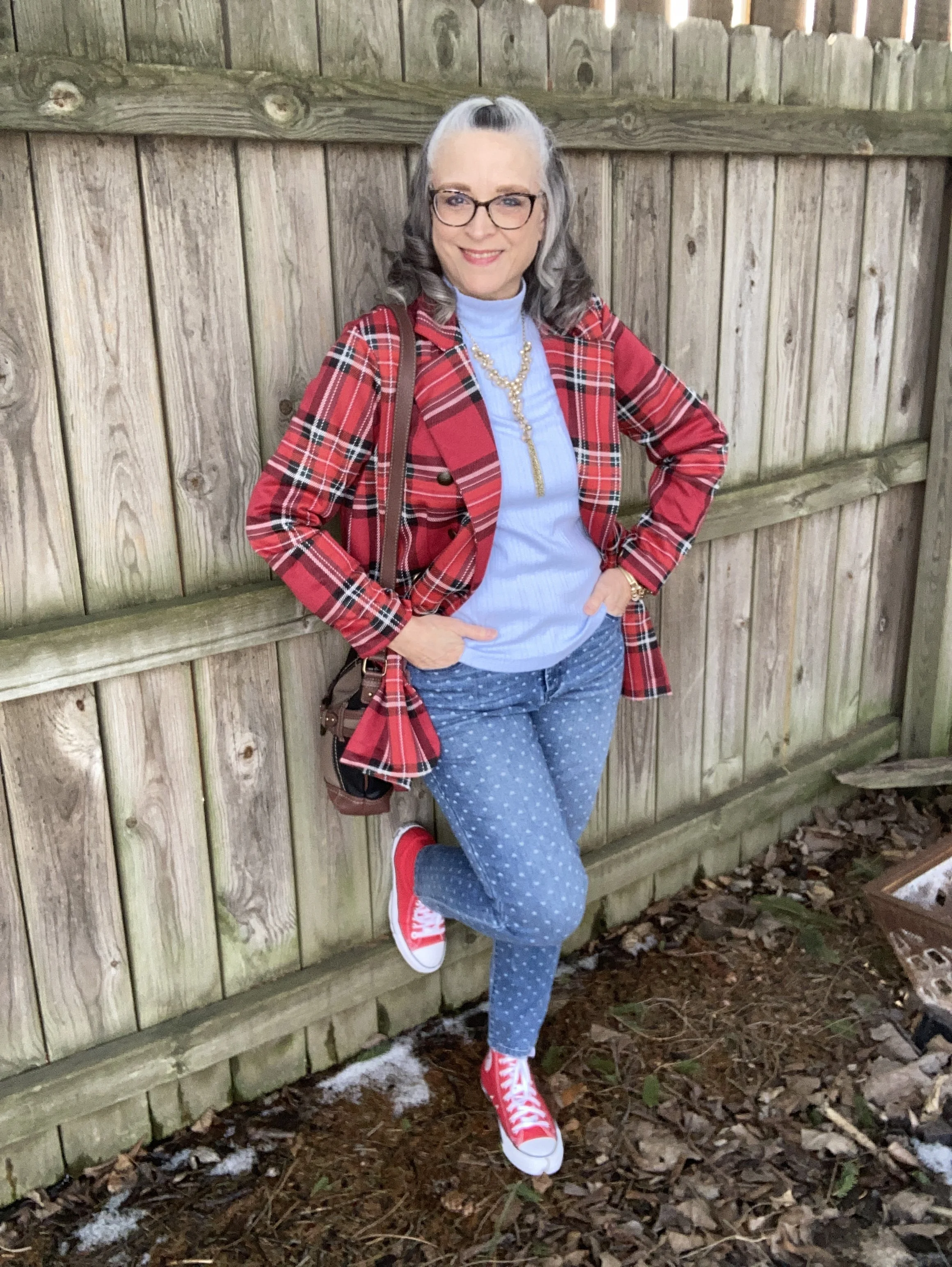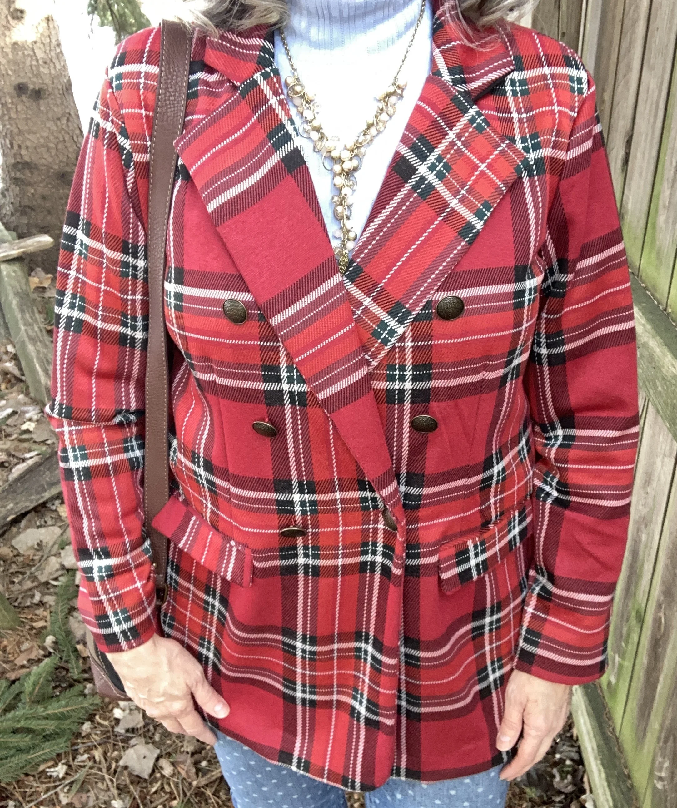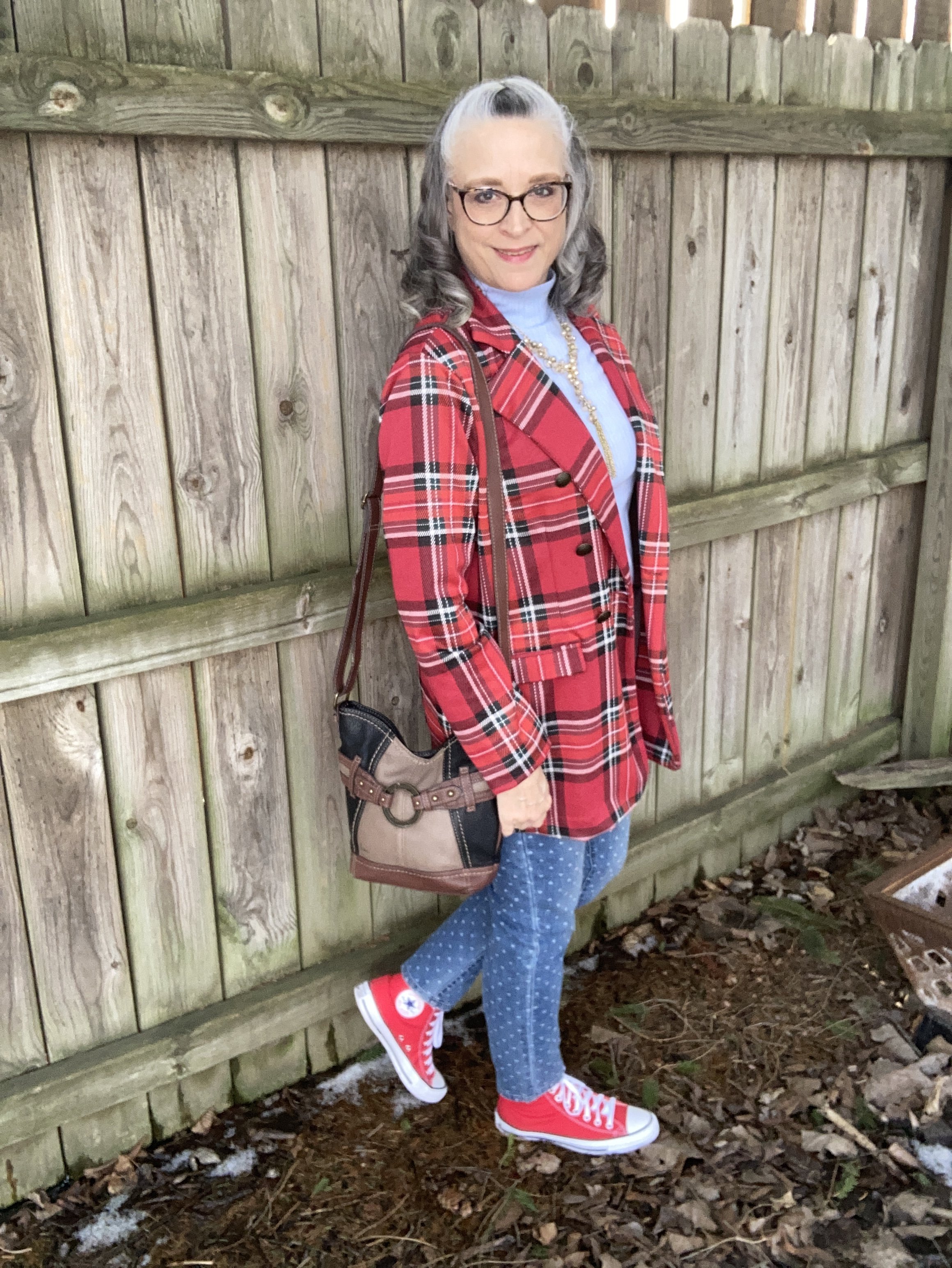 Today’s look revolves around a splendid plaid blazer that I ordered from Maurice’s three years ago. I haven’t worn it too much, in part because I have way too many clothes and can’t possibly wear everything. Yes, it is a problem, but a fun one. Ha, ha. You can see how I styled this same blazer with distressed jeans and converse sneakers here.