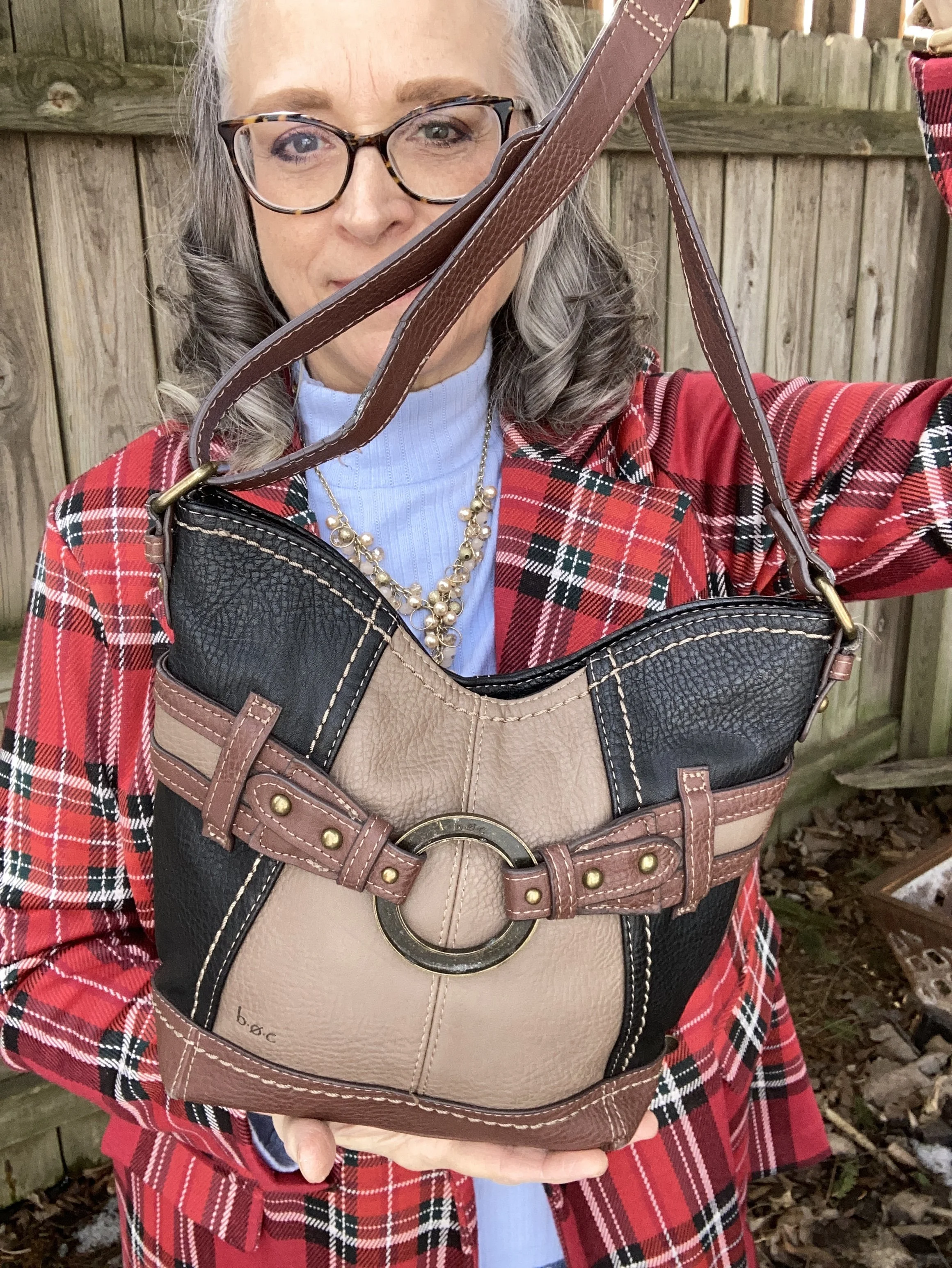 My bag is also second hand and is a brand called b.o.c. This piece works well as a cross body bag. Do you think this bag was a good choice or do you think I should have went with a solid black bag, or possibly a red or blue? Let me know what you think.