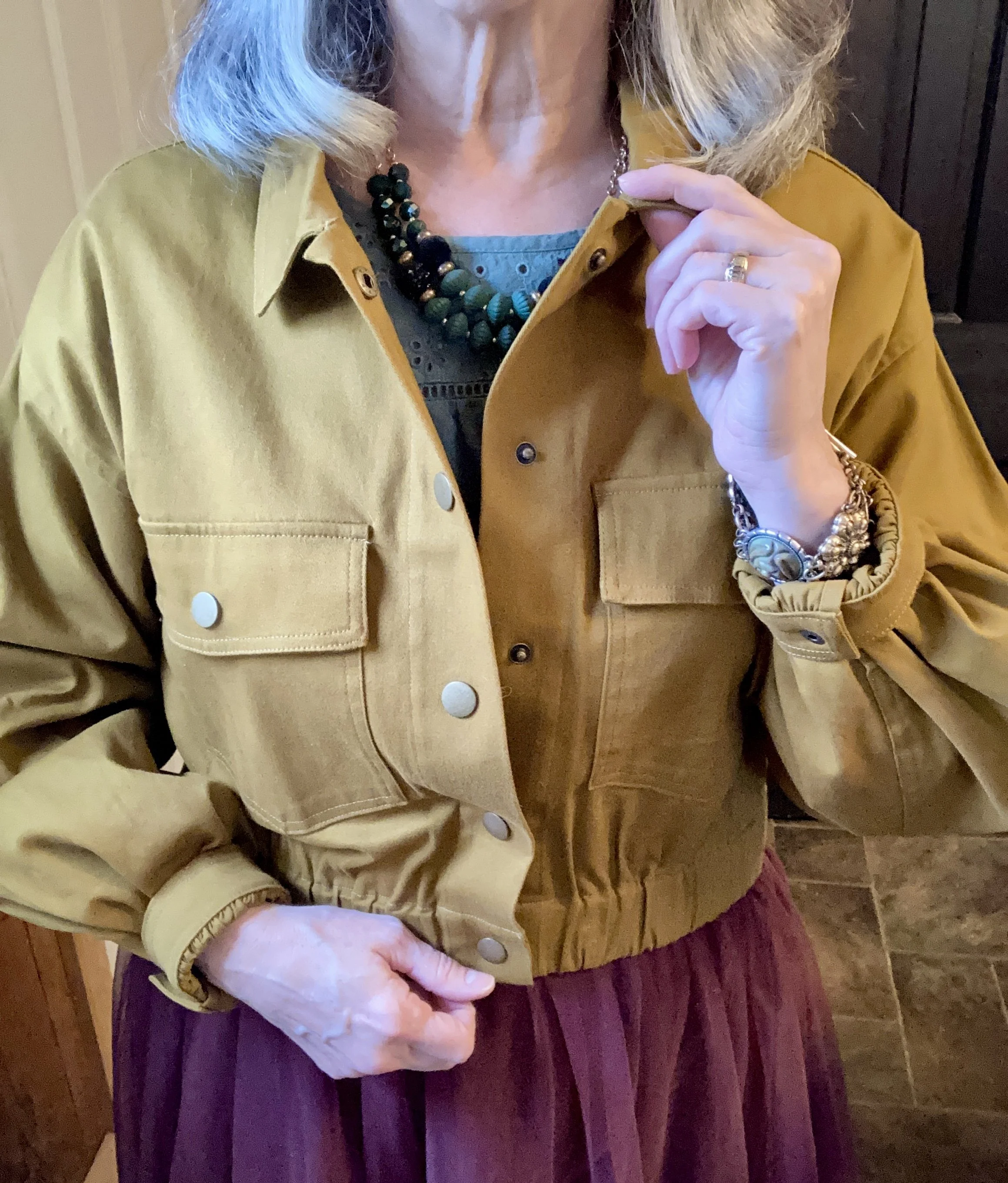 The scarf having yellow in it made me pause for a minute, but then I thought why not. Even though we don’t really think of yellow as a Valentine’s day color it still makes for an interesting outfit. This cropped style Ophelia Roe bomber jacket was a Meijer clearance purchase a few seasons ago. I thought it was the perfect topper.
