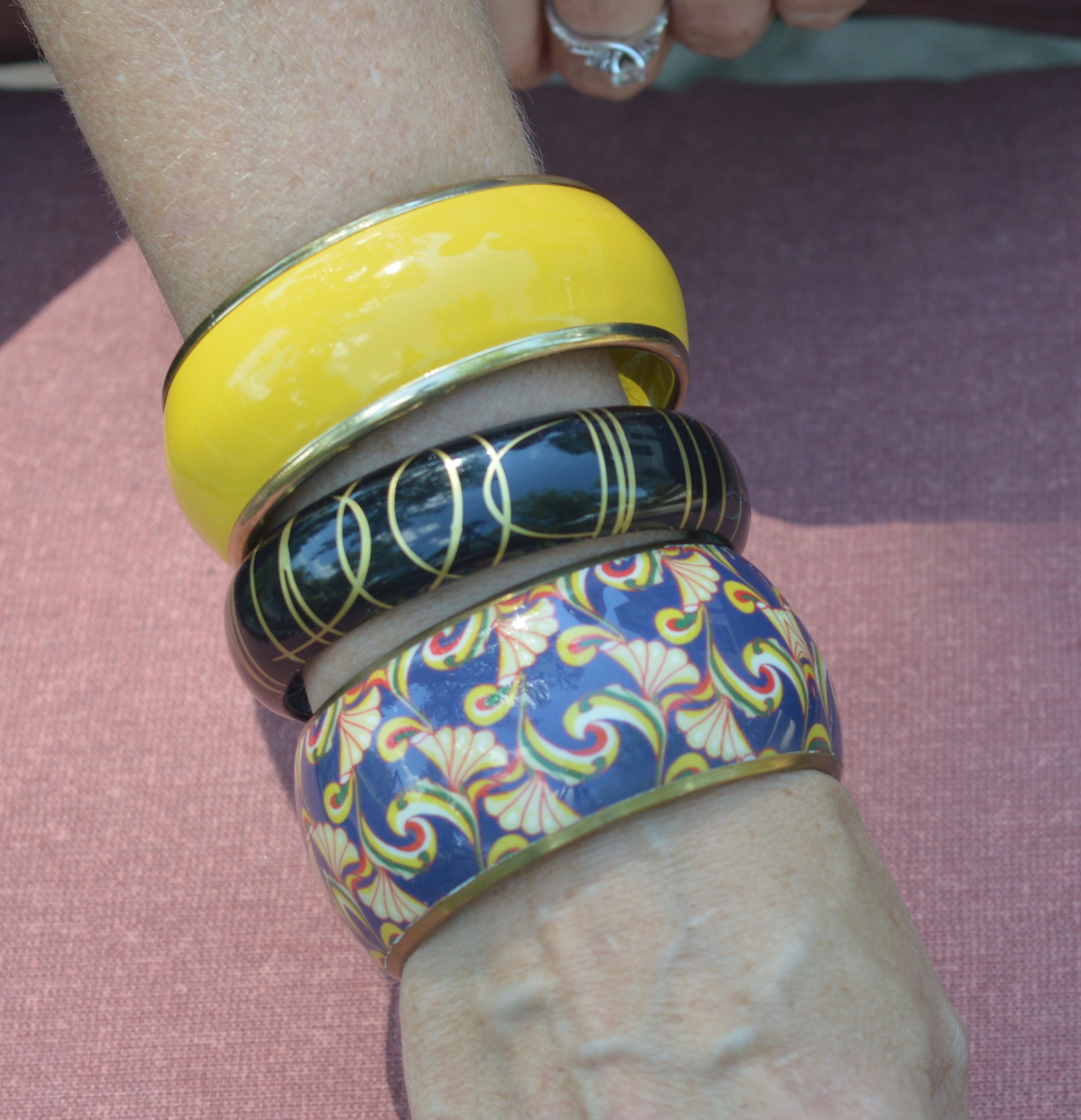 This month's focus in my Awesome Accessories column is on bracelets, or what I like to call arm candy. I love to wear jewelry of all sorts. I do not have pierced ears and due to problems with wearing certain types of metals I can't wear clip ons either as they bother my ears. So many times, I will wear a necklace and bracelets. There are so many types, styles and colors of bracelets that if you are not typically a bracelet wearer just follow along and maybe by the end of this post you will be.