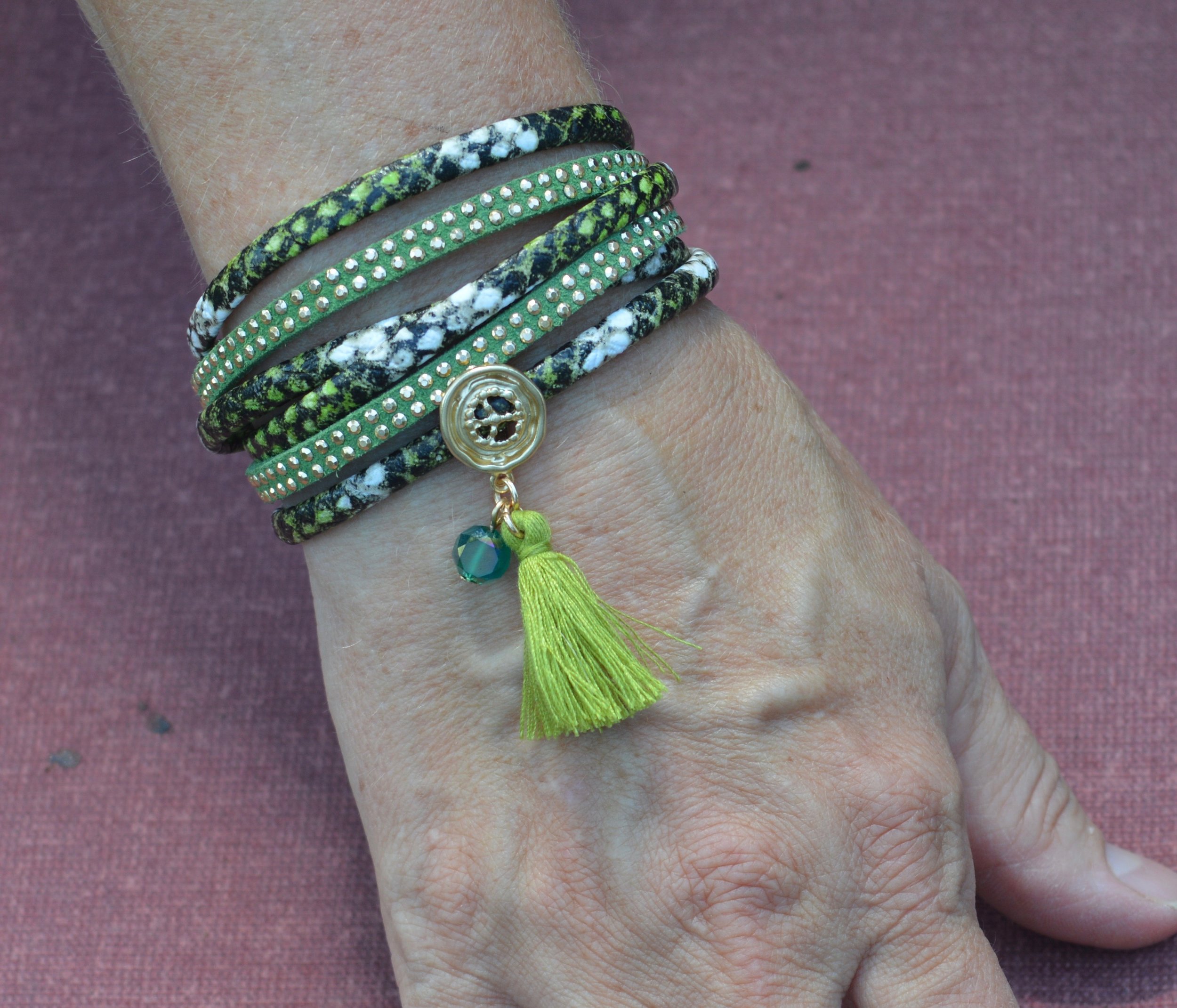 The second type is made from various materials. It winds around your wrist then clasps with a magnet type clasp.