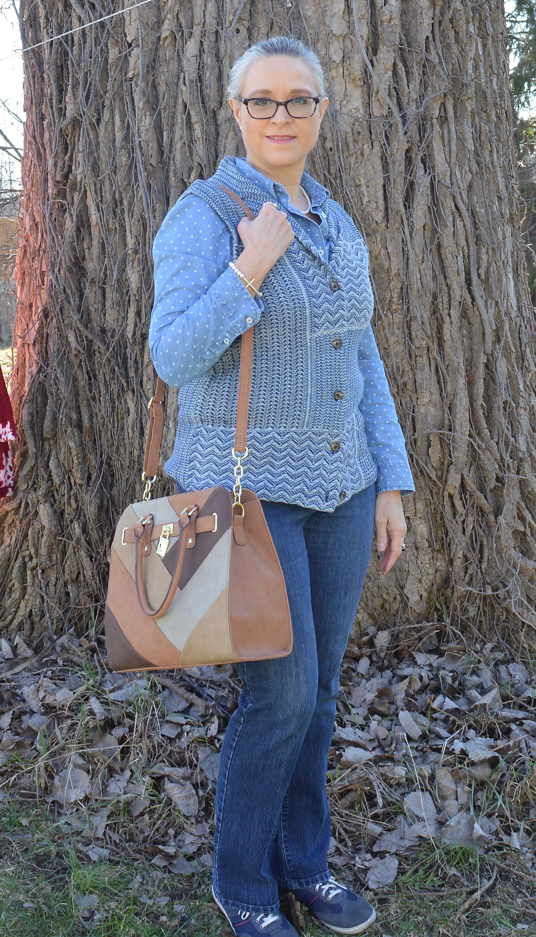 I wanted a summery bag, so I grabbed this Anne Klein piece that I thrifted about a month ago. I really like the straw weaving on the front, and it definitely says warm weather.
