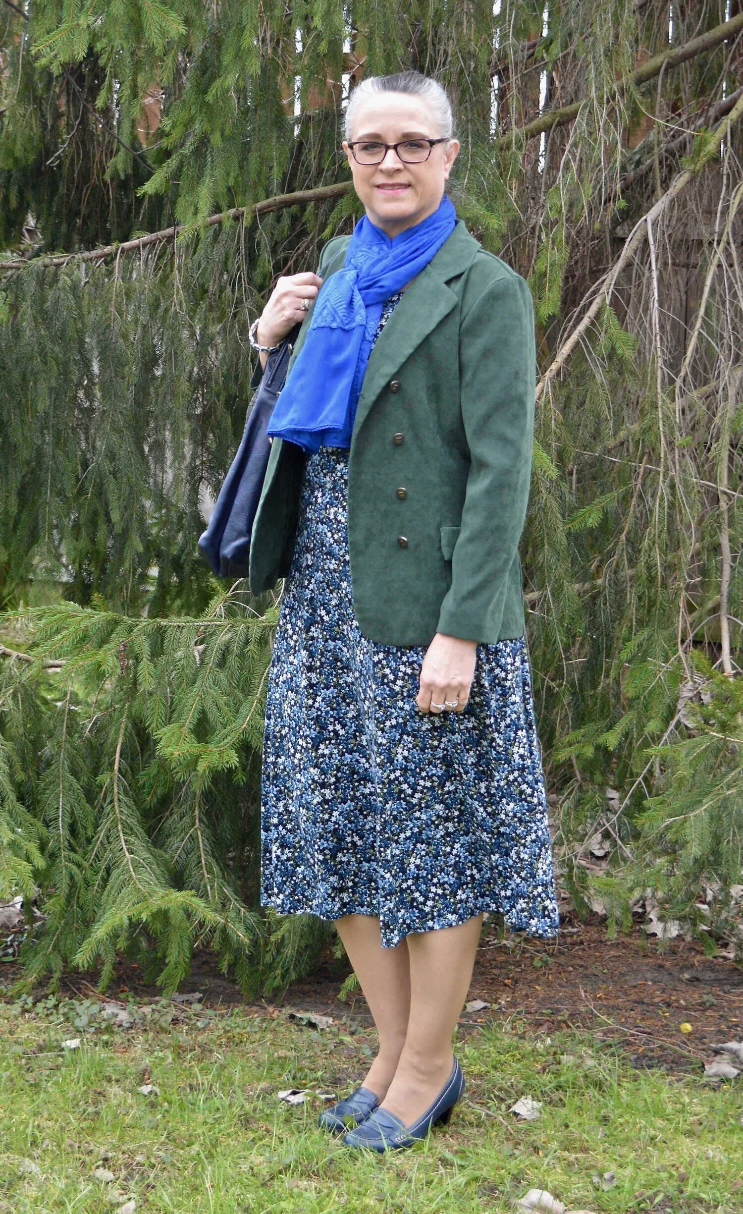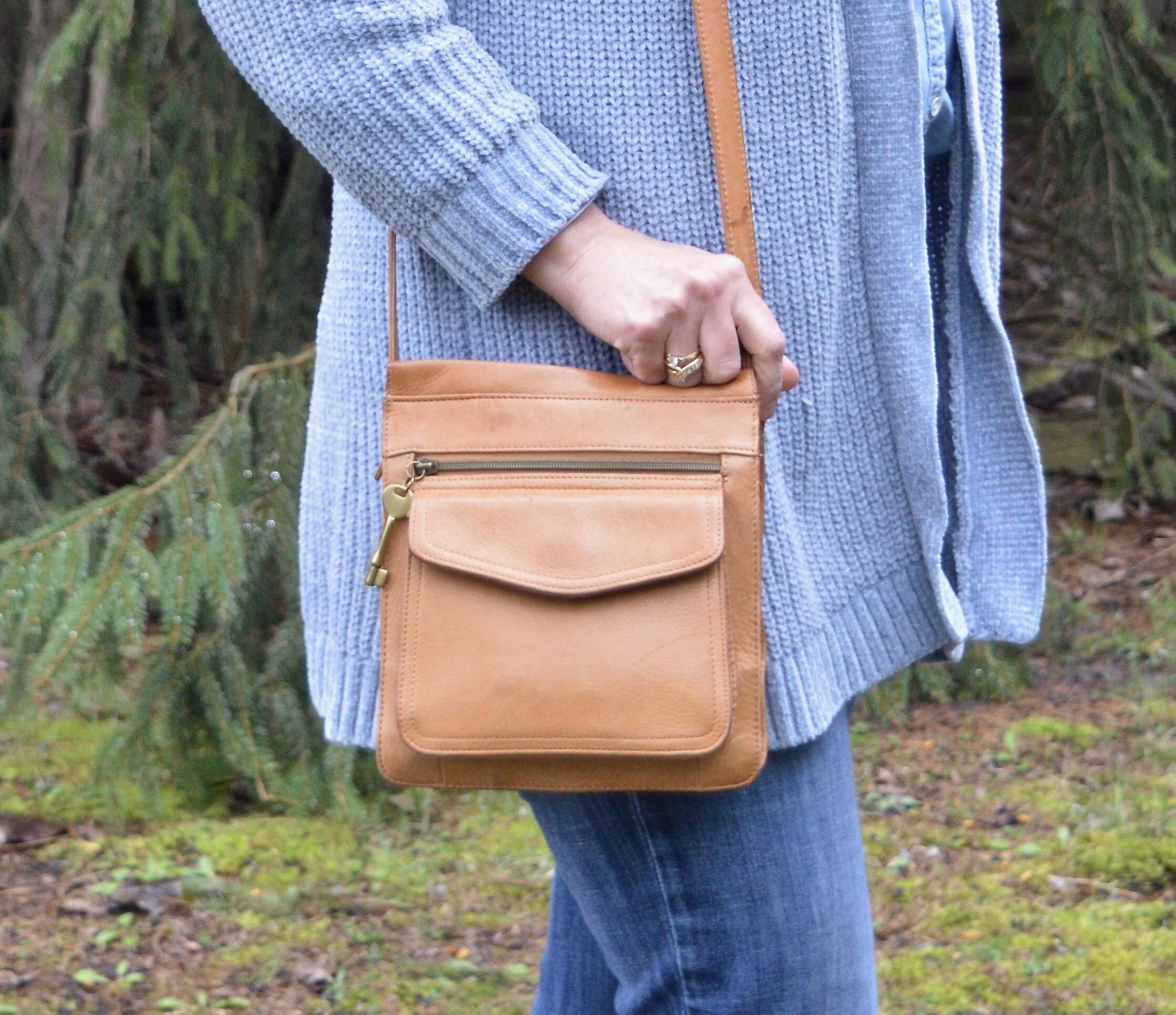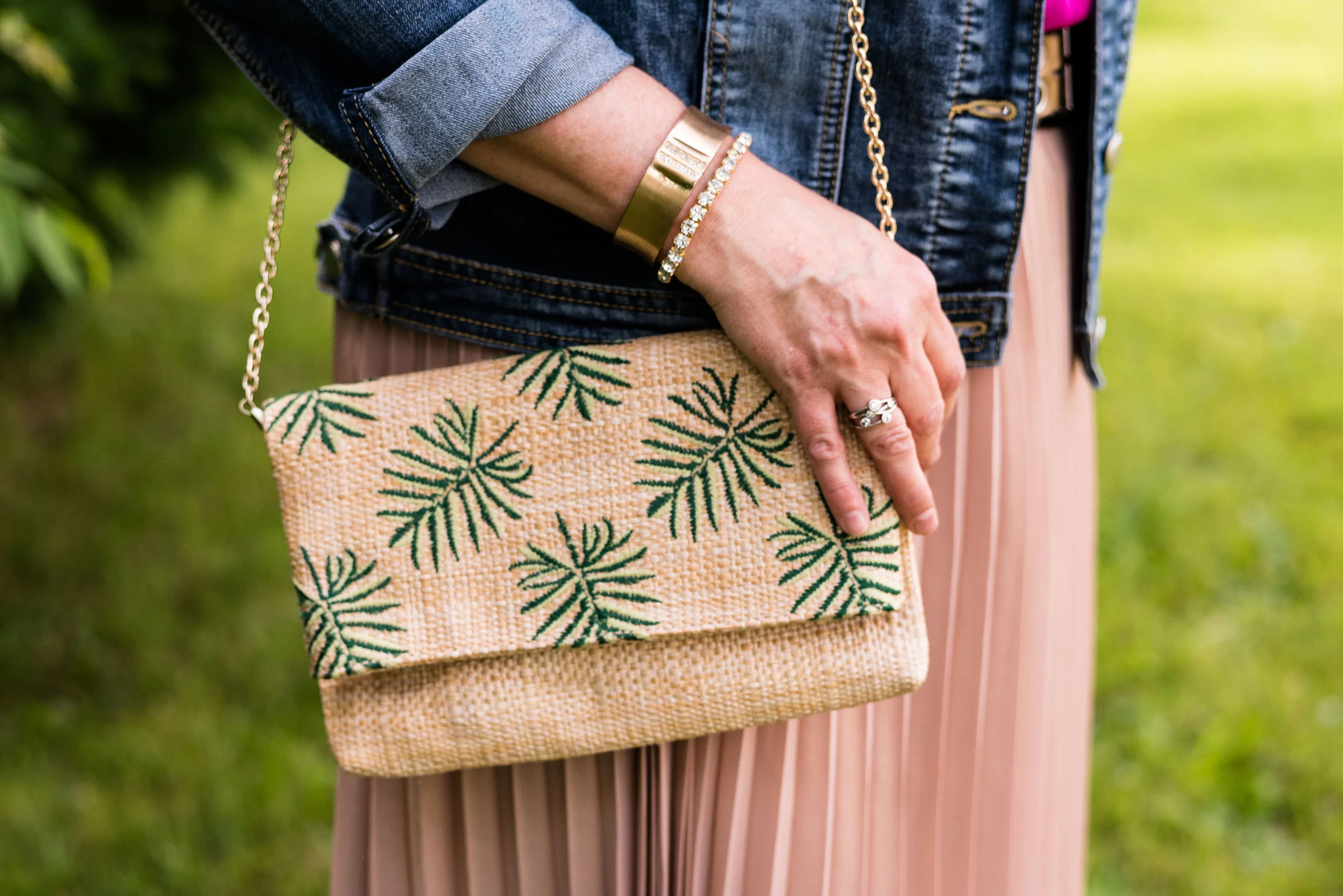 I wanted a summery bag, so I grabbed this Anne Klein piece that I thrifted about a month ago. I really like the straw weaving on the front, and it definitely says warm weather.