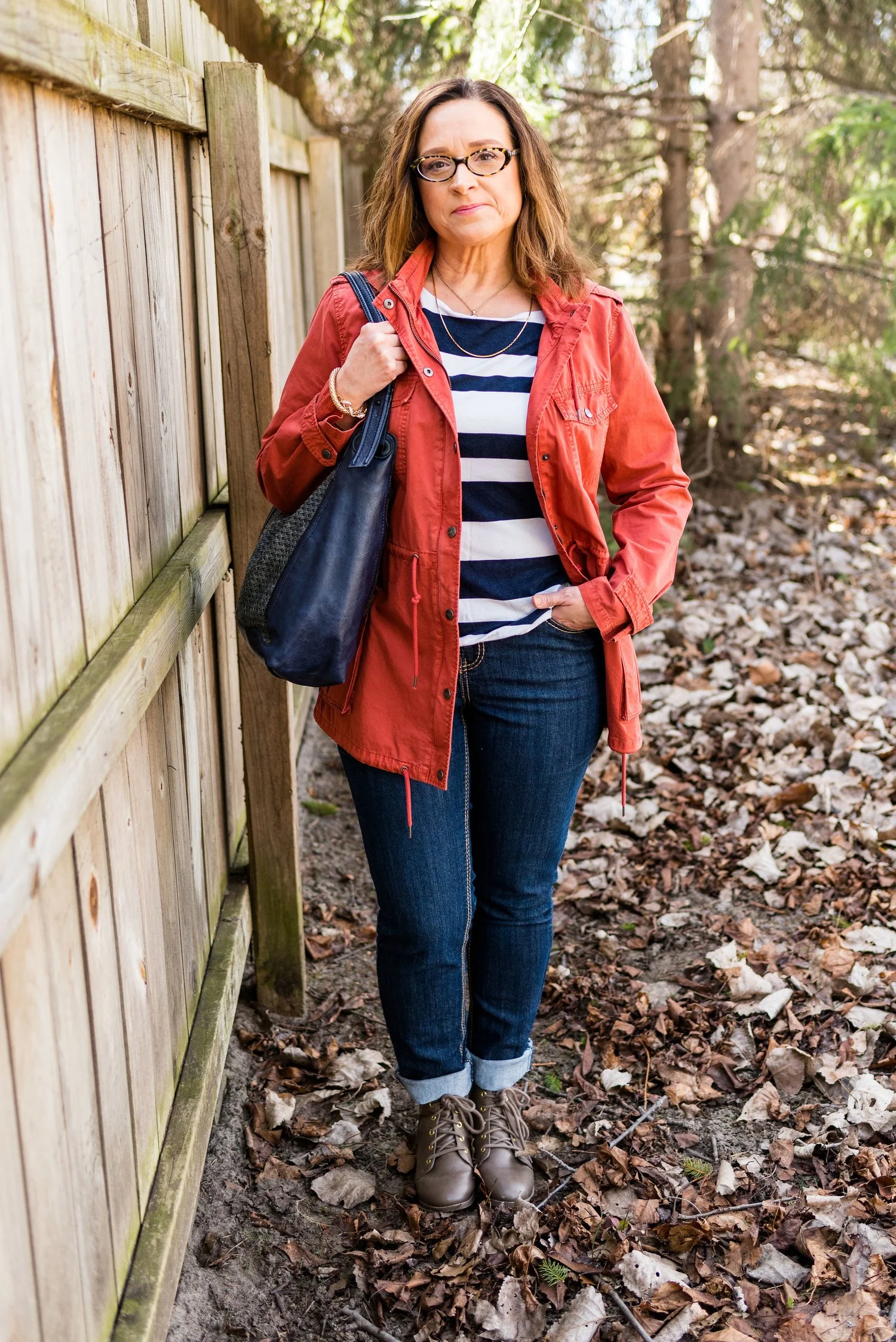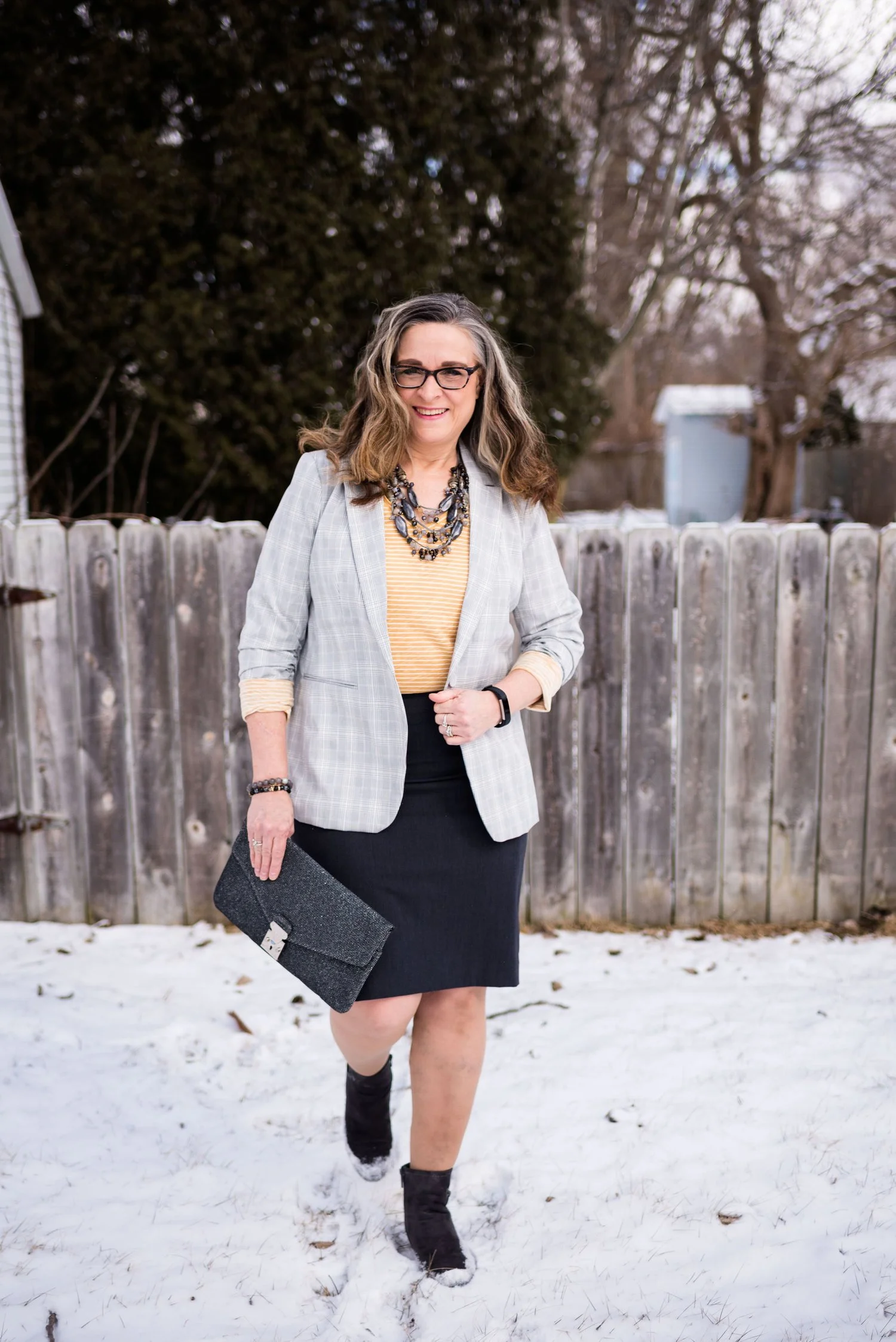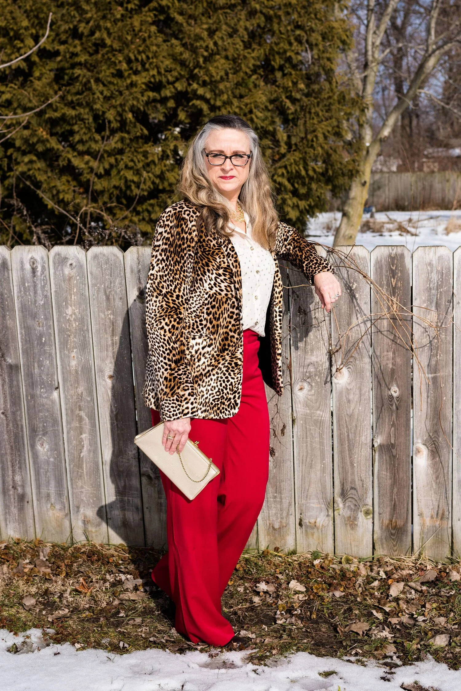 I wanted a summery bag, so I grabbed this Anne Klein piece that I thrifted about a month ago. I really like the straw weaving on the front, and it definitely says warm weather.