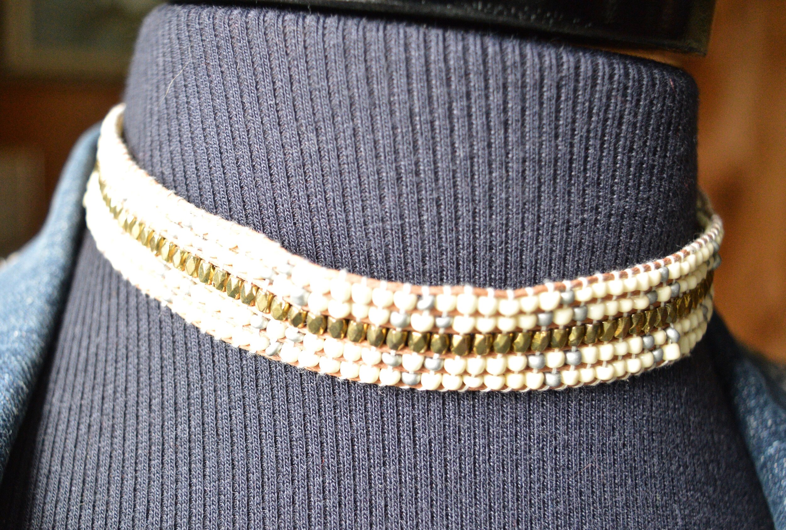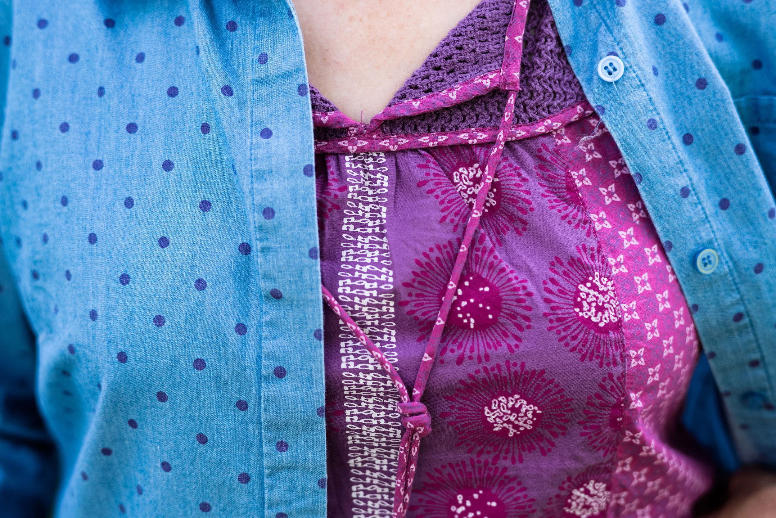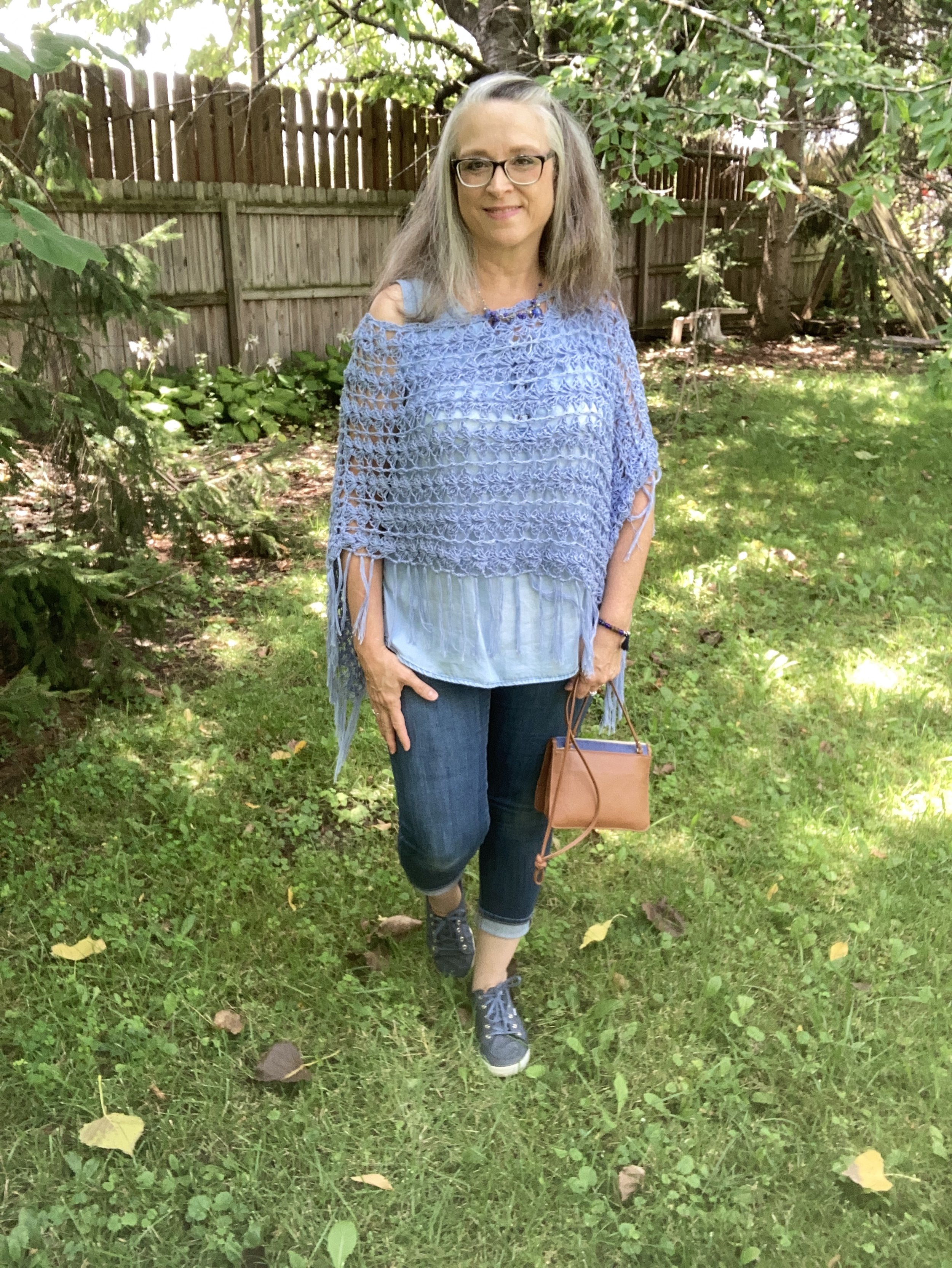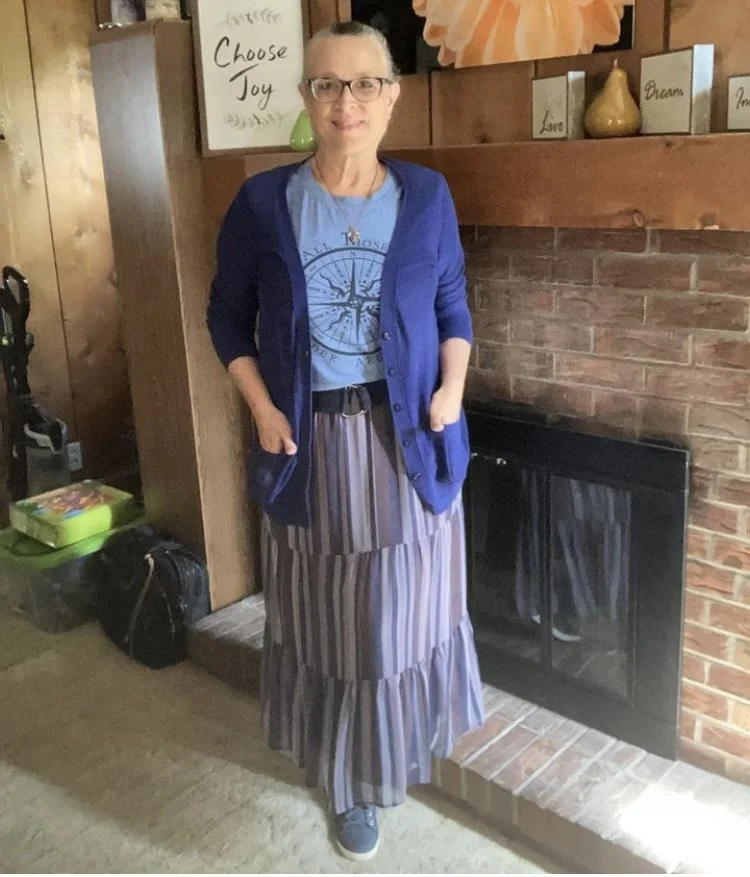 You can see my jewelry in the above picture. I love the layer necklaces and there is no reason to think they have to match. I did think the gold ribbon on the multicolored bead, and the gold chain went well together. Both pieces pulled in the black Chaps espadrille shoes. I got these at Kohl’s a few years ago.