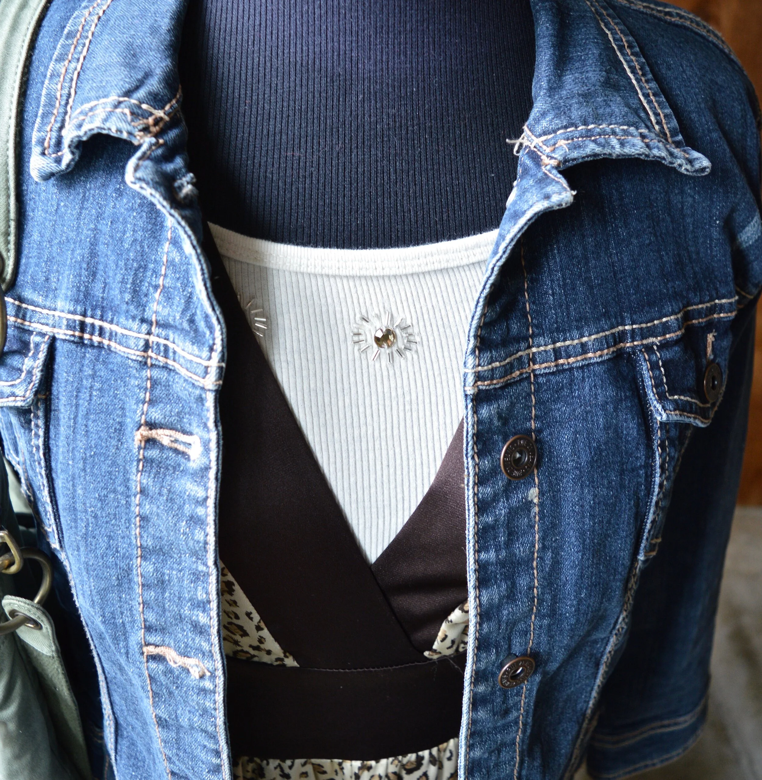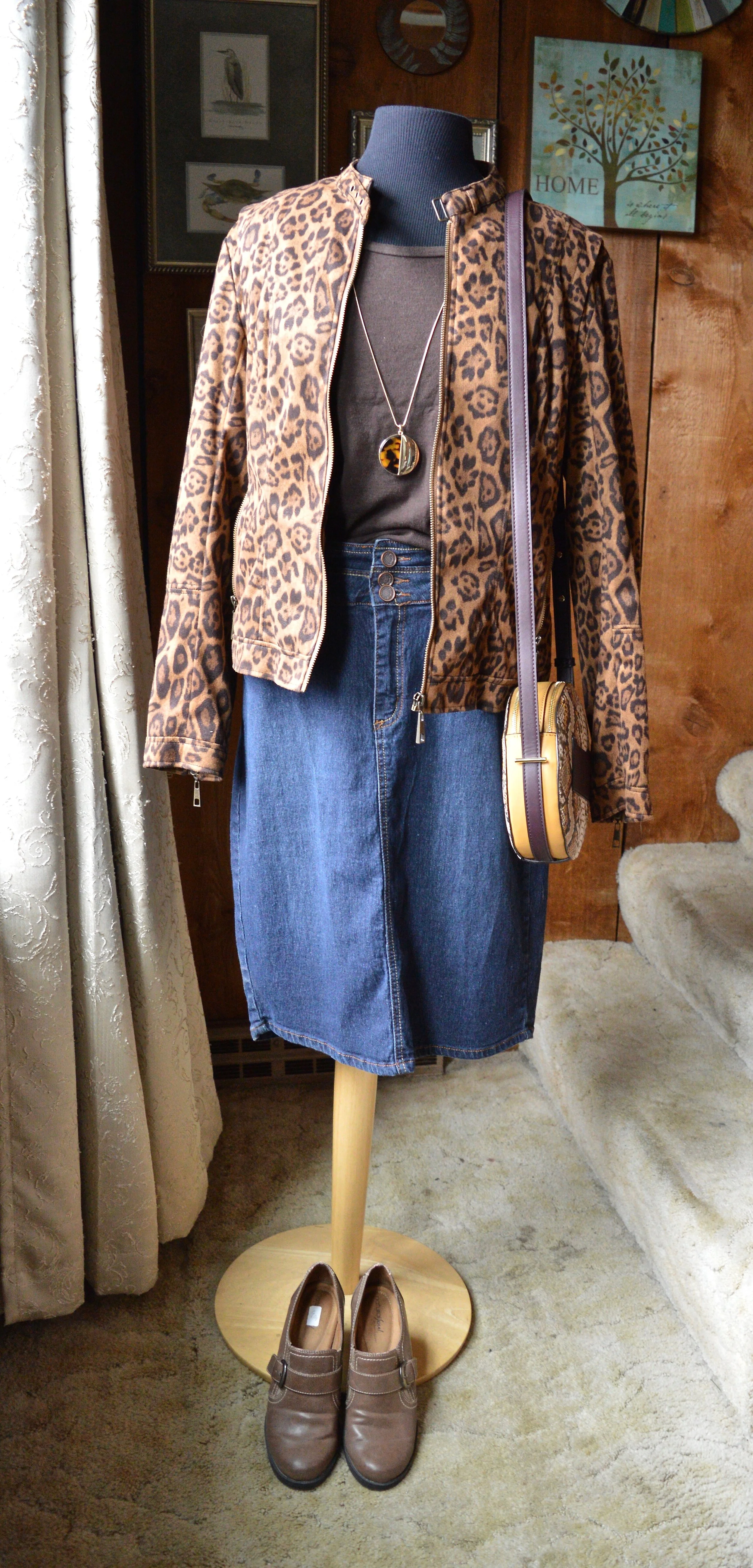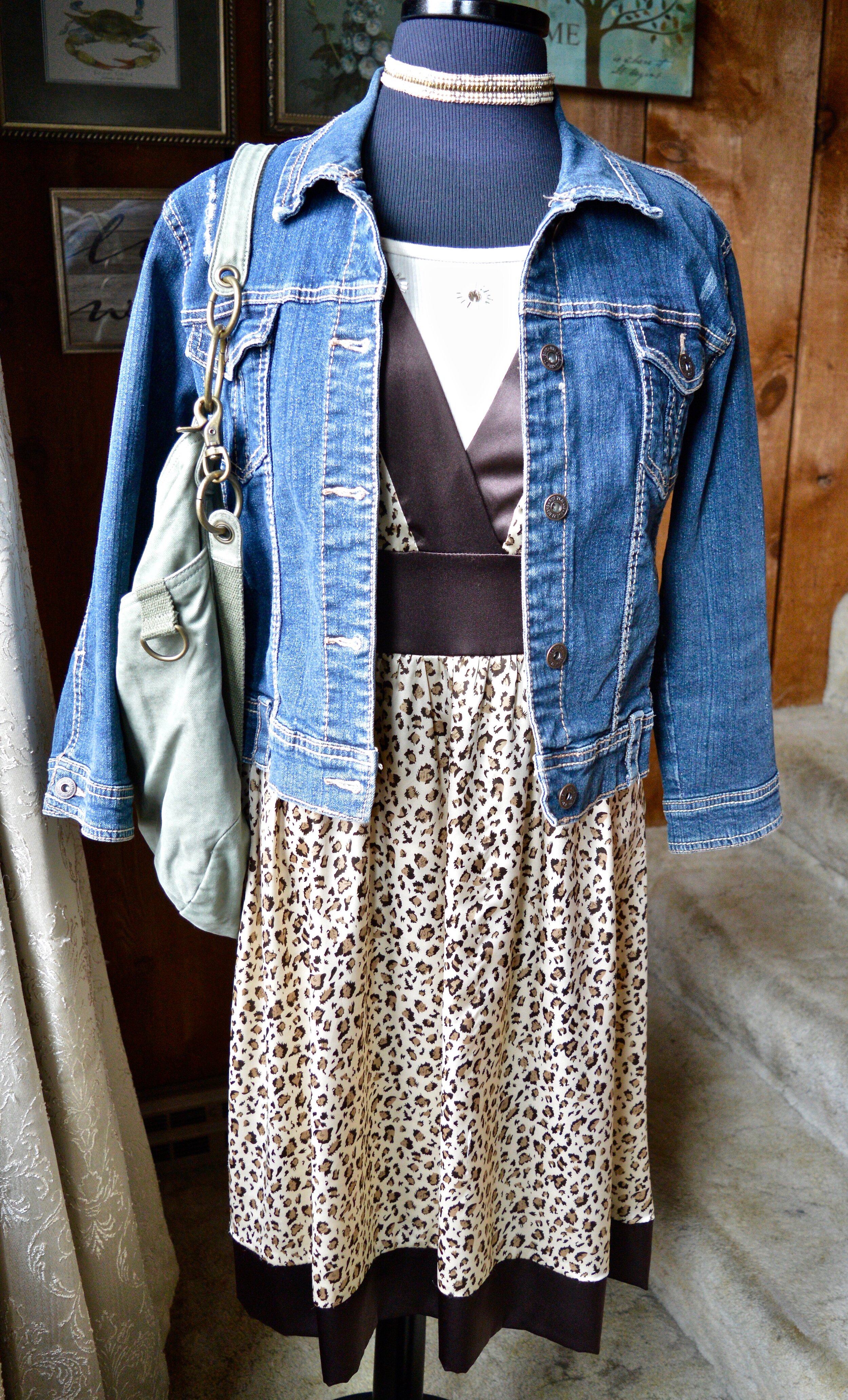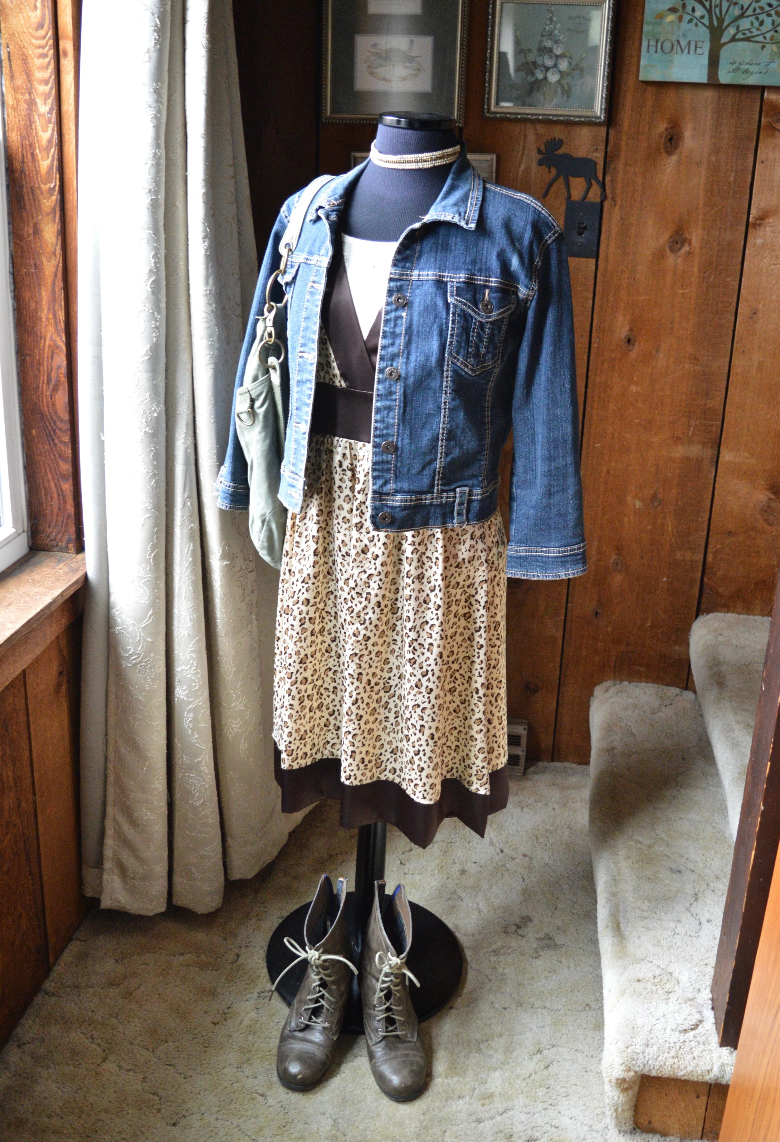 I once again styled it with a white tee, and denim, but this time chose a classic crew neck, thrifted Great Northwest brand, and my 3/4 length sleeve thrifted Rue 21 cropped denim jacket.