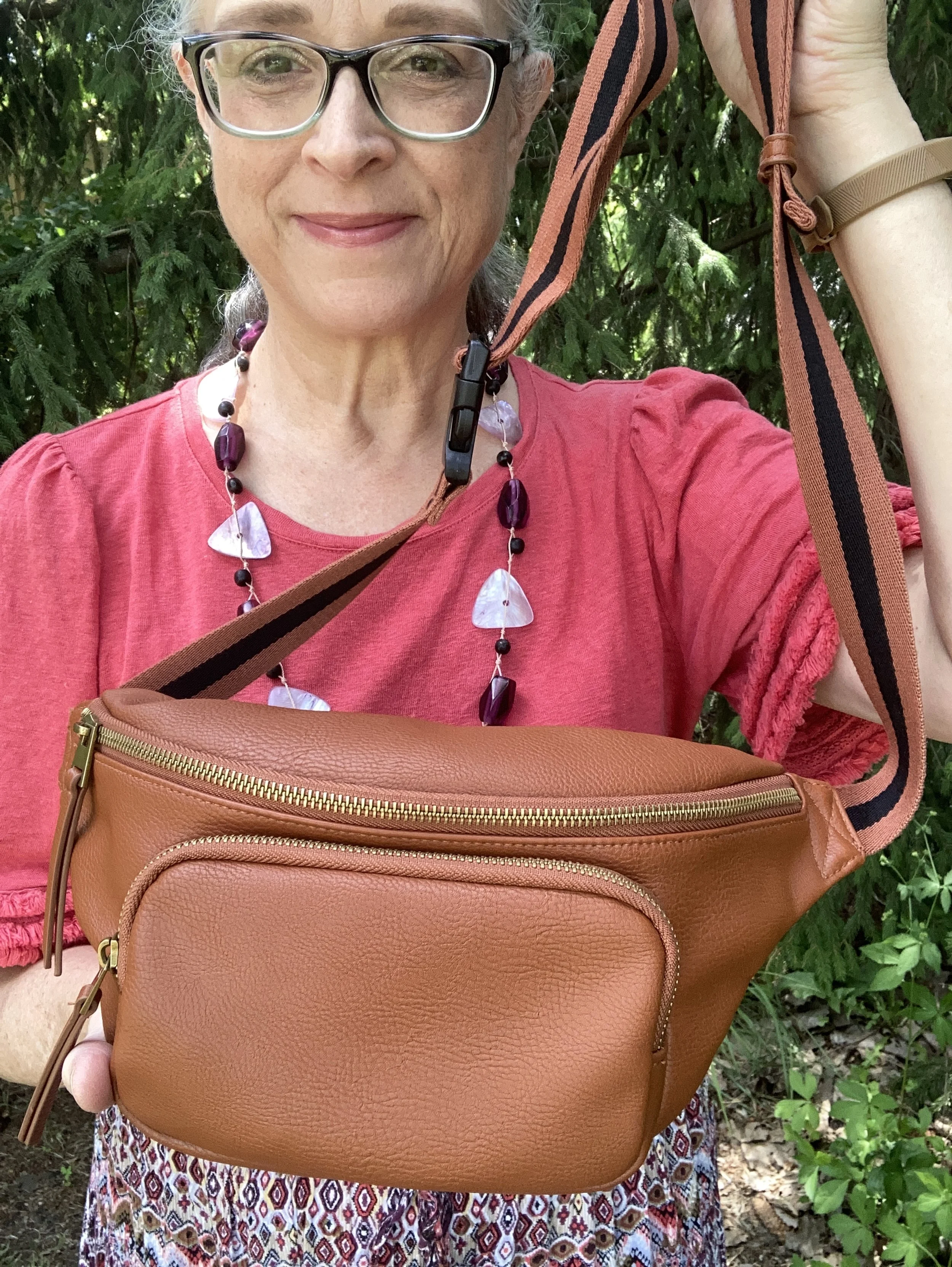 Another second hand find, this Universal Thread cross body bag was exactly what I had been on the hunt for. Obviously, it is more like the old fashion “butt packs” that we used to carry back in the 80’s. What I like about this version is being able to wear it across my chest. It makes it feel more secure and is very easy to access. This is a soft, buttery faux leather and, while small, it holds my wallet, phone, keys and a tube of lip gloss. What more does a girl need?