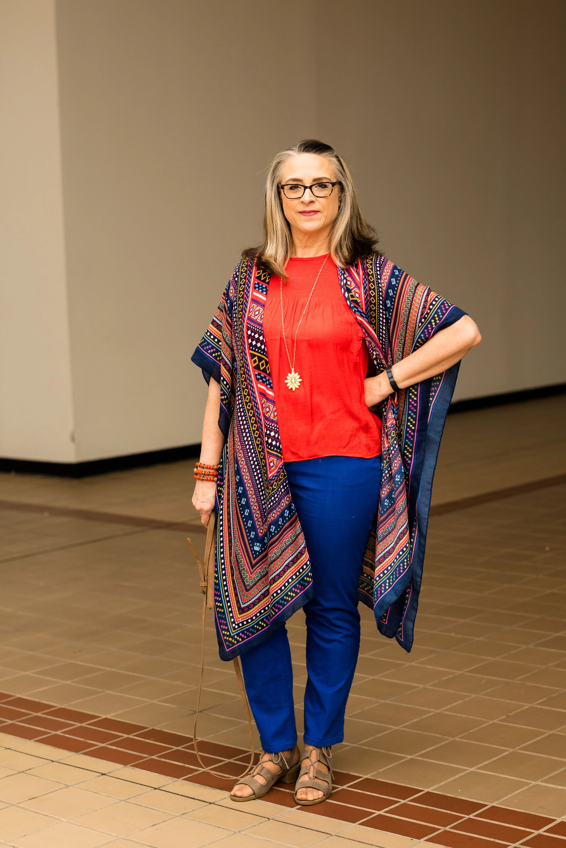 Viva Magenta is a bright, rich pinky red that easily catches the eye. It is a pretty color that can be combined with loads of other shades for a spring and summer worthy outfit palette. I don’t have a lot of pieces this color in my closet, so I was glad to see I had this Sonoma 3/4 bell sleeve top and the thrifted Libby Edelman shoulder bag.