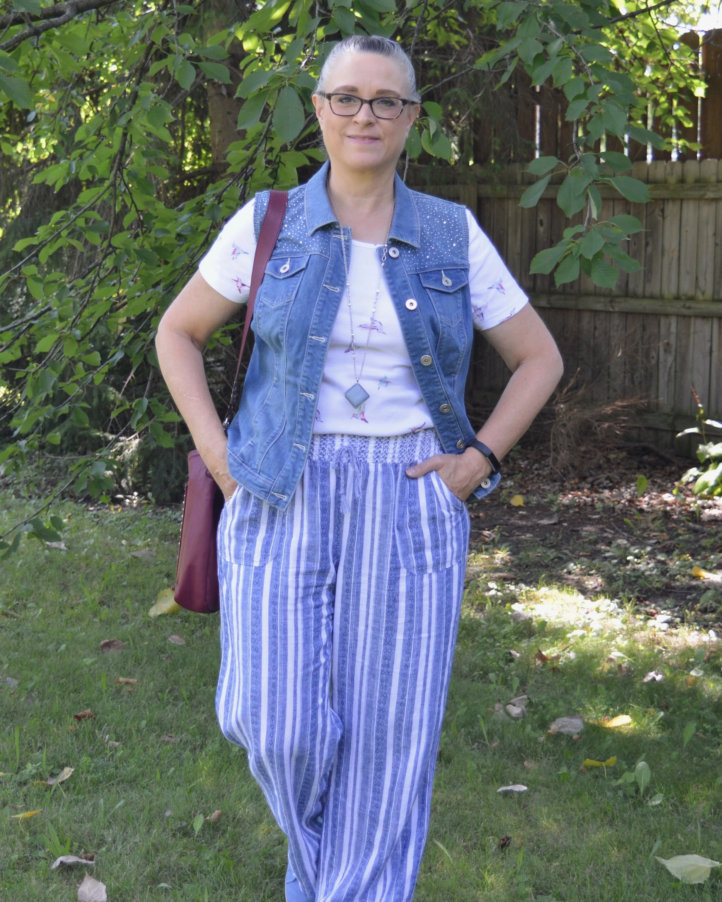 What did you think of this outfit? Would you wear patterned pants like these? I’d love to hear your thoughts, so leave me a comment or two.