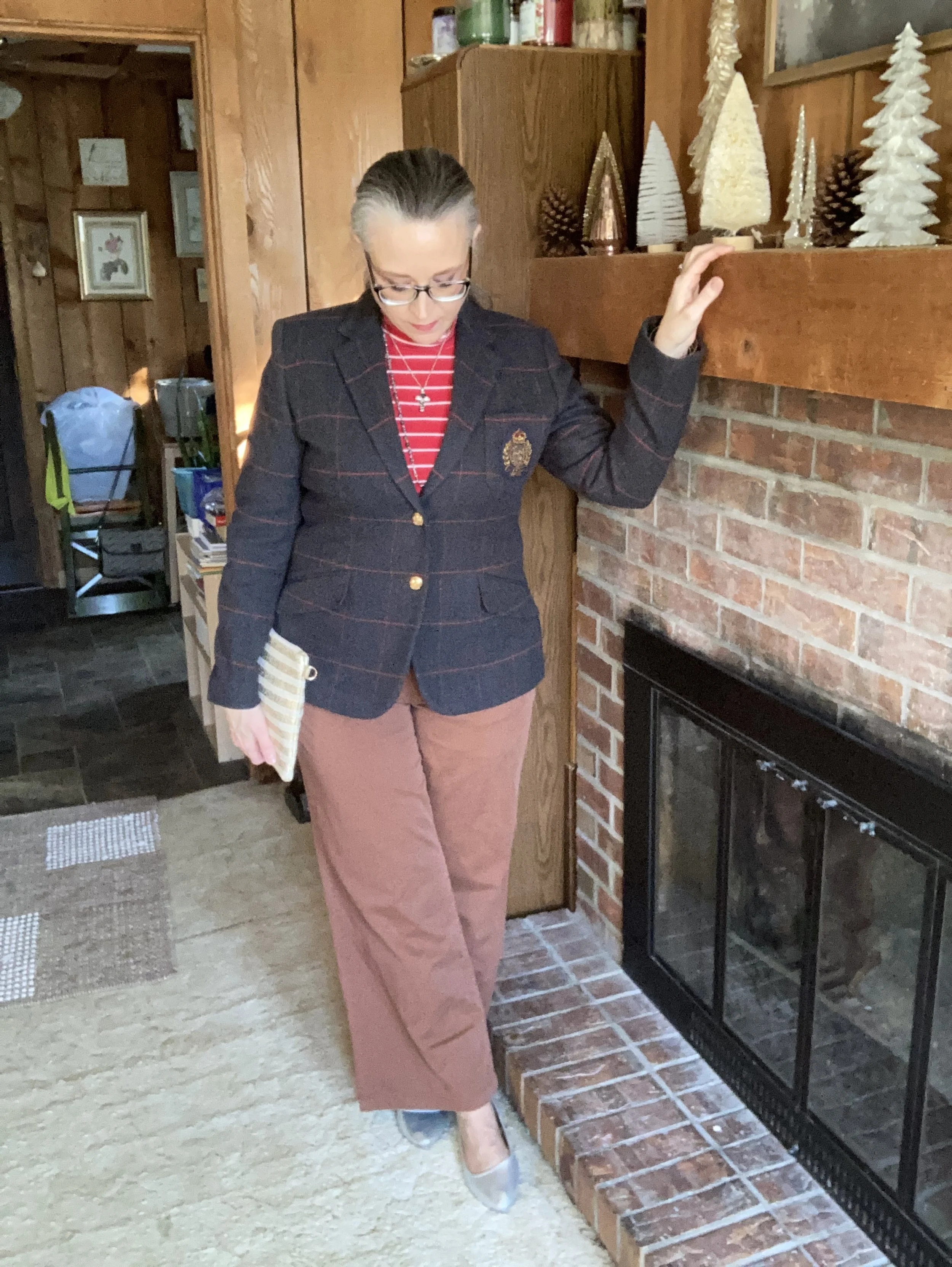I have had this thrifted, burgundy, Pendleton blazer for years. A few times I have thought to get rid of it, but then I pull it out and create an outfit and remember why I keep it. It is a beautiful, structured piece and I like the longer silhouette.