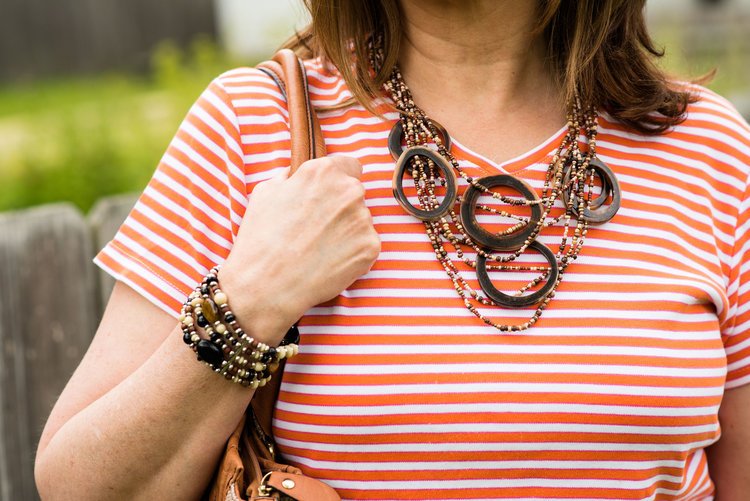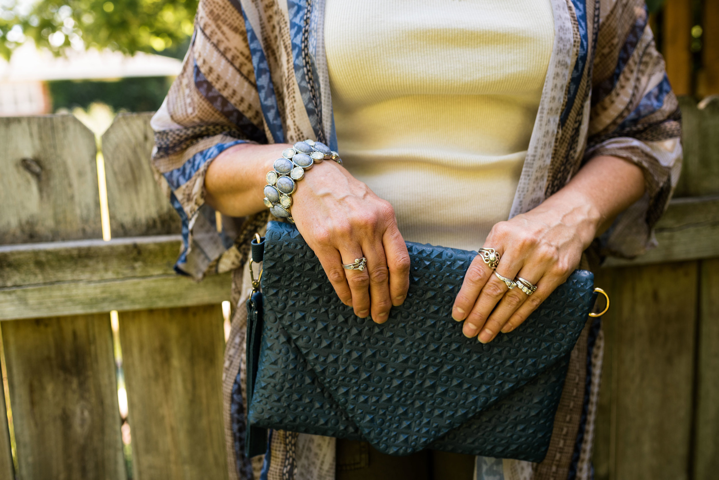 Accessories are an easy way to add texture to all of your outfits without having to buy new items. You already have purses and bags and jewelry. Think about how you can combine these for more interesting and undated looks.