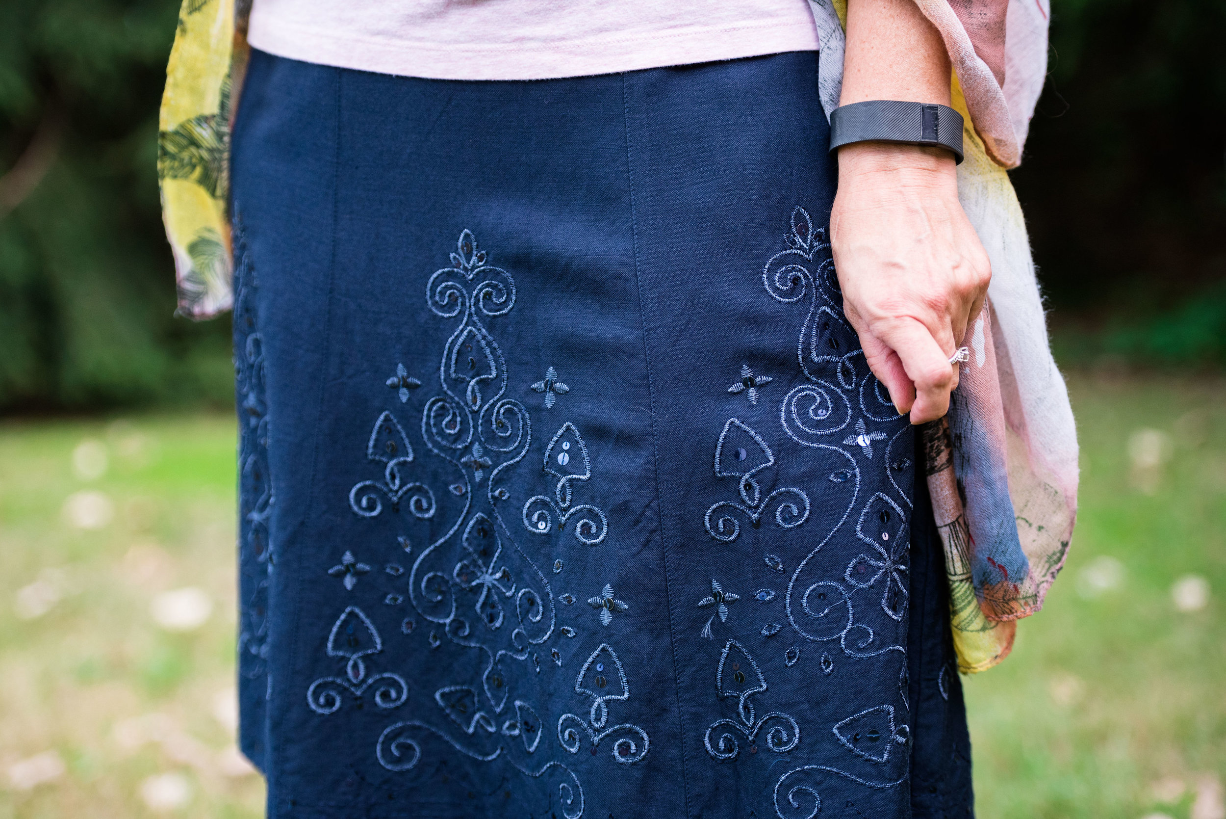 Things like beads, jewels, sequins, fringe and special buttons, are all embellishments. Certain types of stitching, like the embroidery above, as well as things like gathering or ruching also add texture to an outfit.