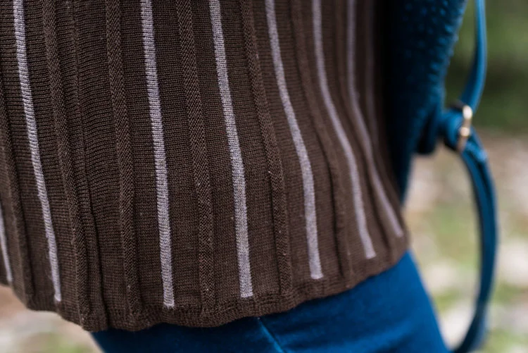 The same goes for this outfit as well. The striped dress is knit, the jacket has polka dots and the bag is not only made of suede, but has fringe. Texture upon texture, upon texture. Going back to my initial post about texture, I showed some photos of textural elements in nature. If you go for a walk in a park or even in the city, you will see layer, upon layer, upon layer of texture. It is perfectly okay to wear lots of texture in your outfits, as long as you think about how you are putting things together. You can see my original post here
