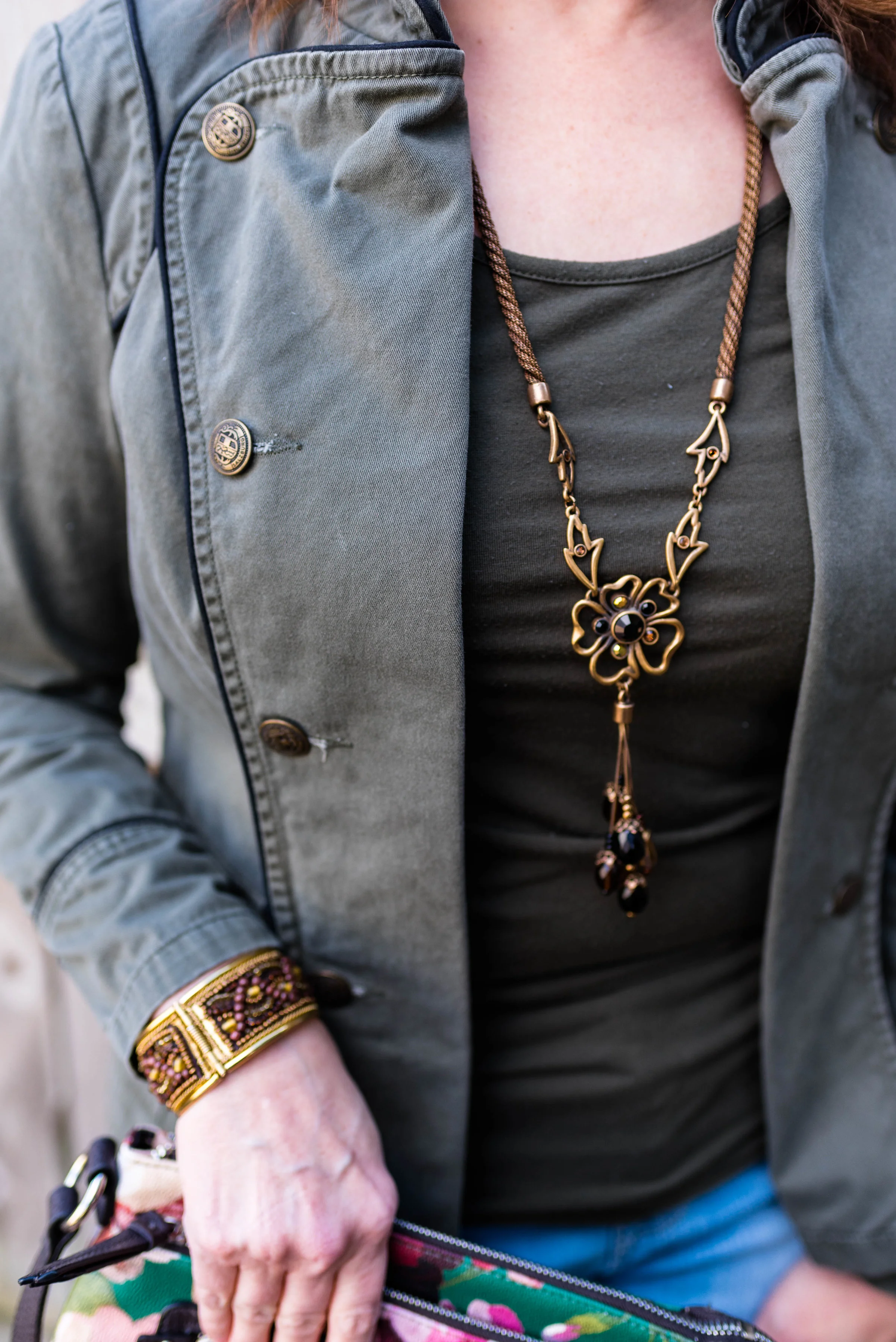 Jewelry is another way to add texture to your outfits without adding a lot of bulk. There are so many choices when it comes to jewelry with just about every material imaginable. Here are some of my pieces.