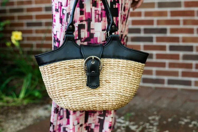 I don’t know that a lot of us think about how a bag brings texture to an outfit, but it does. Especially with all the different fabrics and types of bags that are now available. Textures in bags are seen in the the types of materials used, the type of weave chosen and the embellishments on the bags.