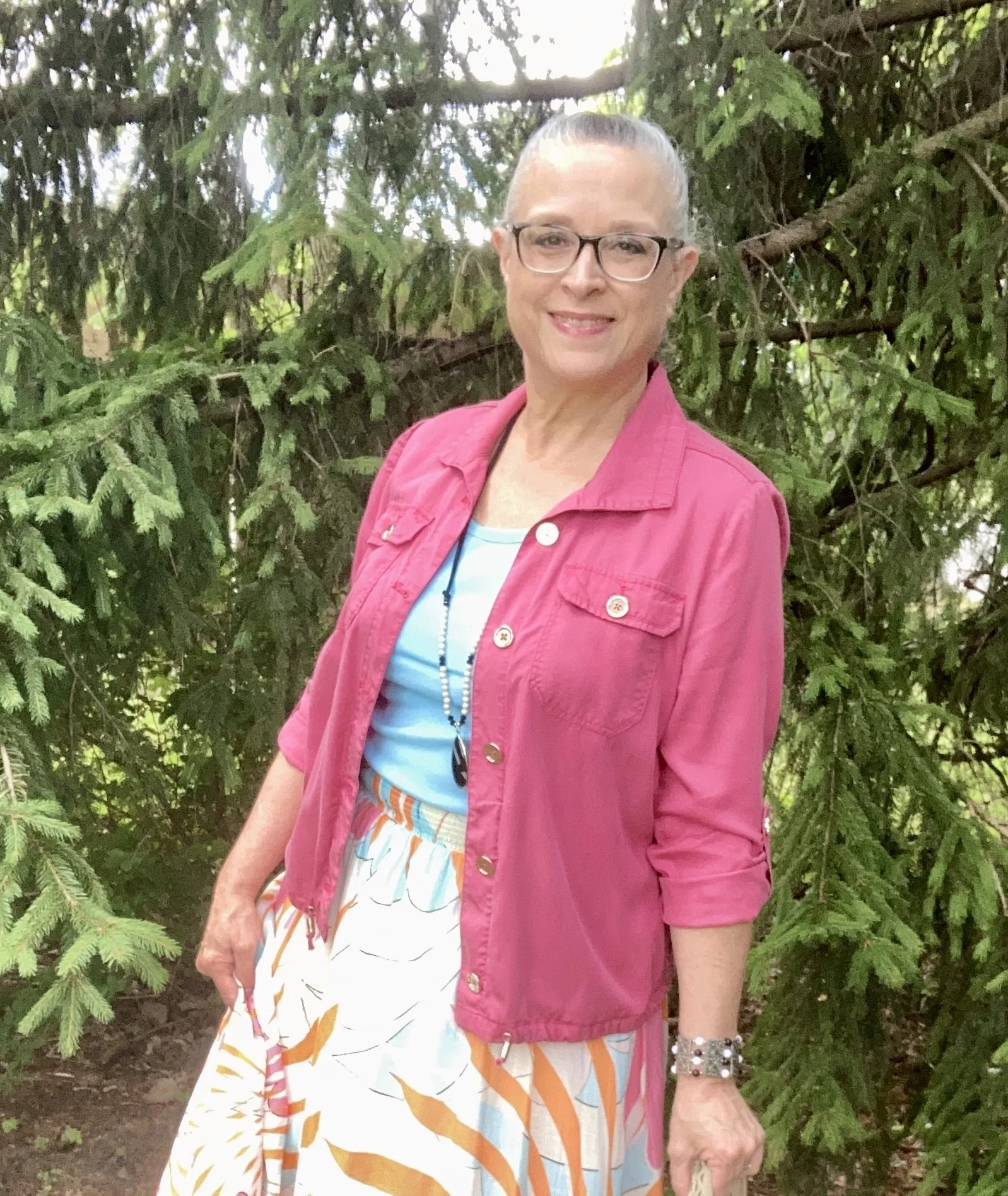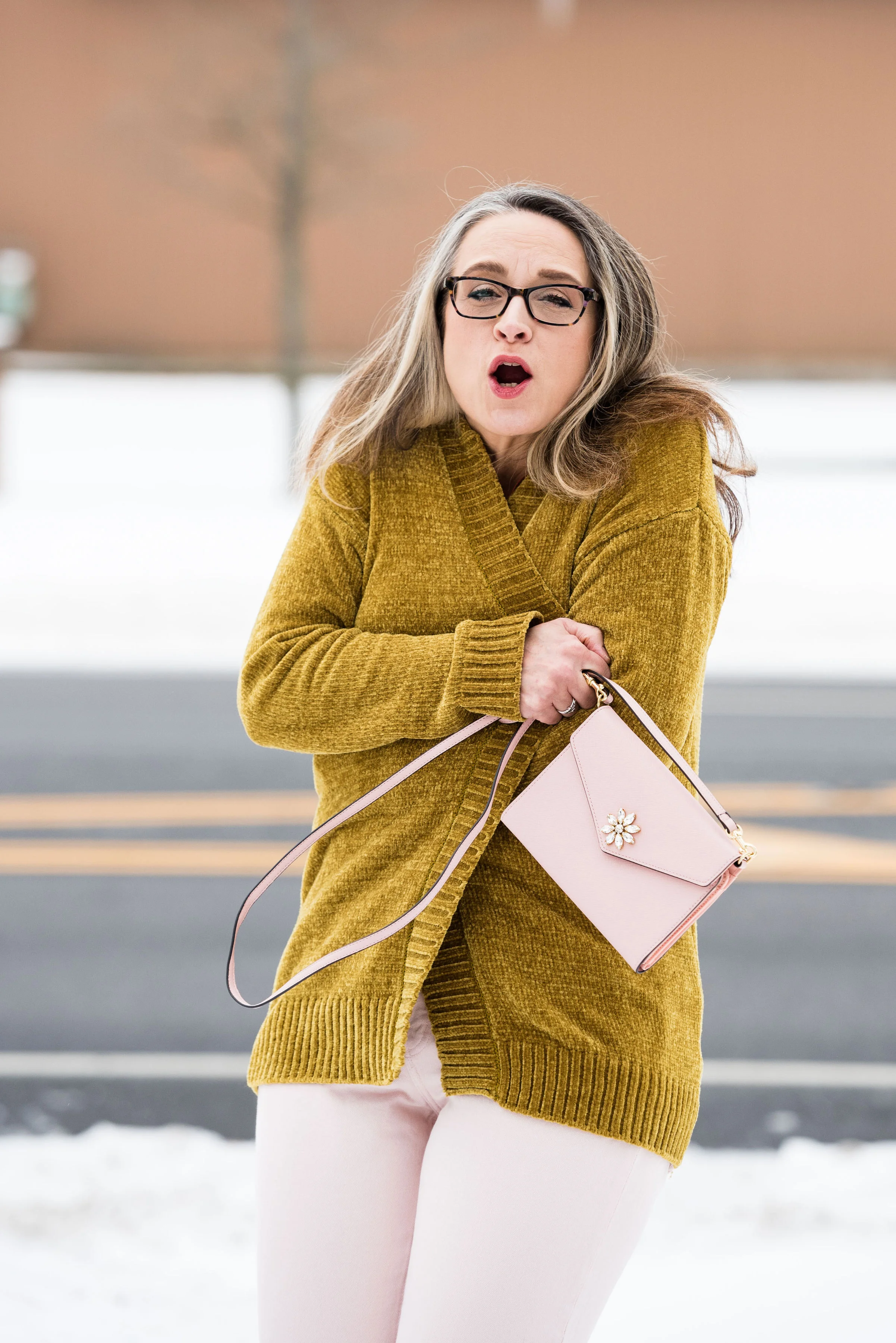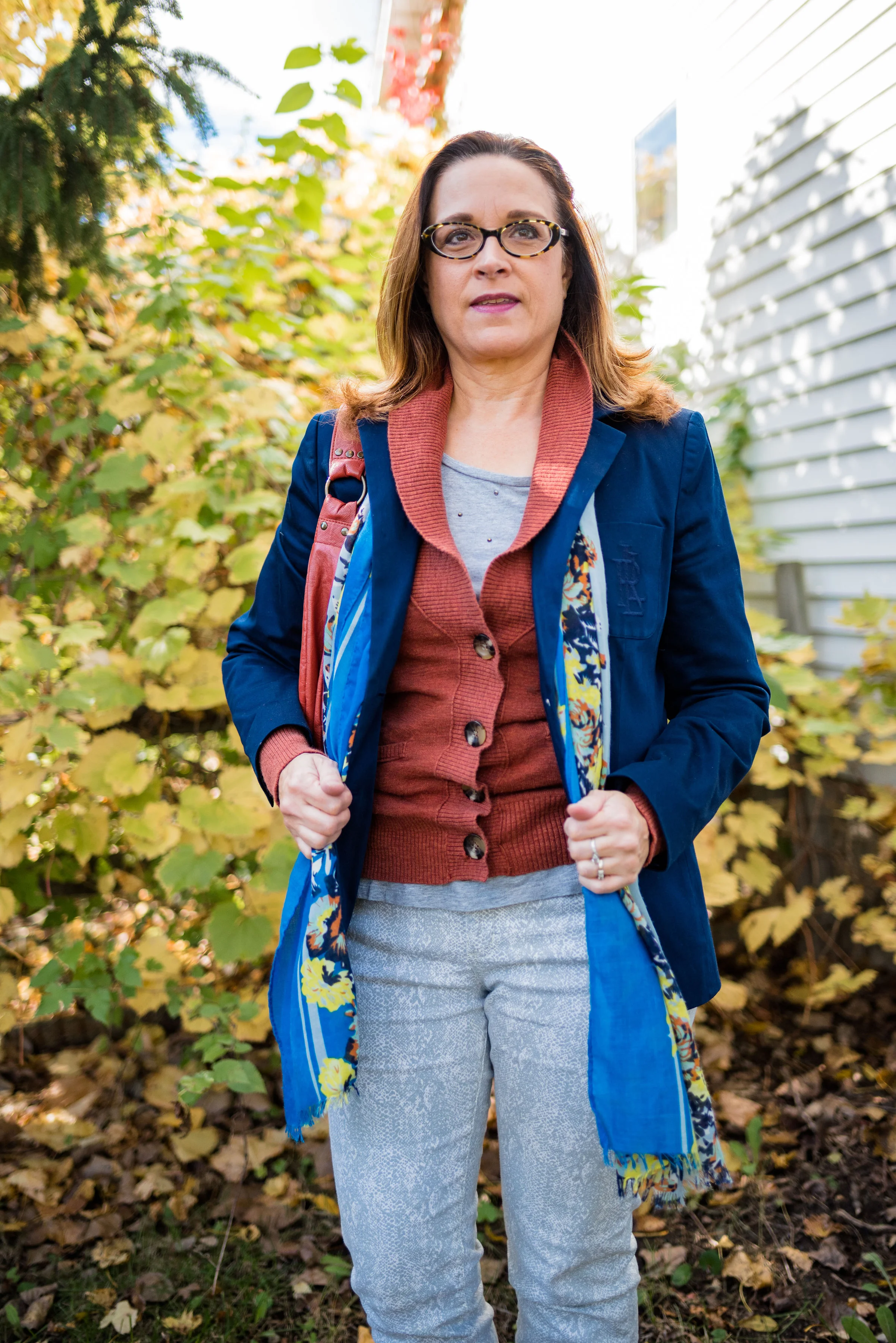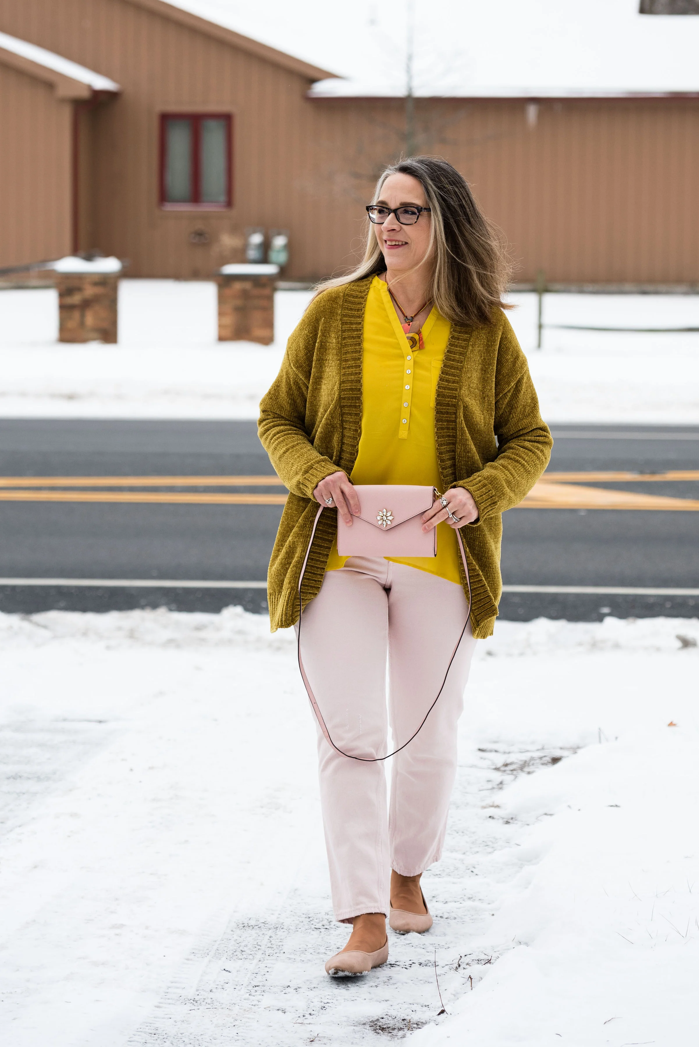 My bright pink jacket is a Chico’s thrift find. It is actually a petite, but I don’t have a super long torso, so I occasionally can get away with a petite size. You don’t really notice, especially if the sleeves are rolled up.