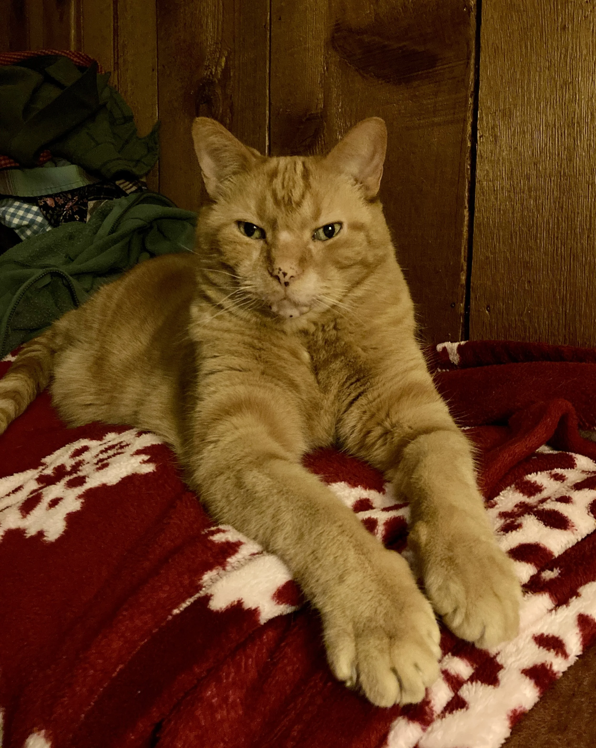 Our silly curmudgeon, Plato Aristotle Radcliffe Christensen. A large cat had to have a large name!