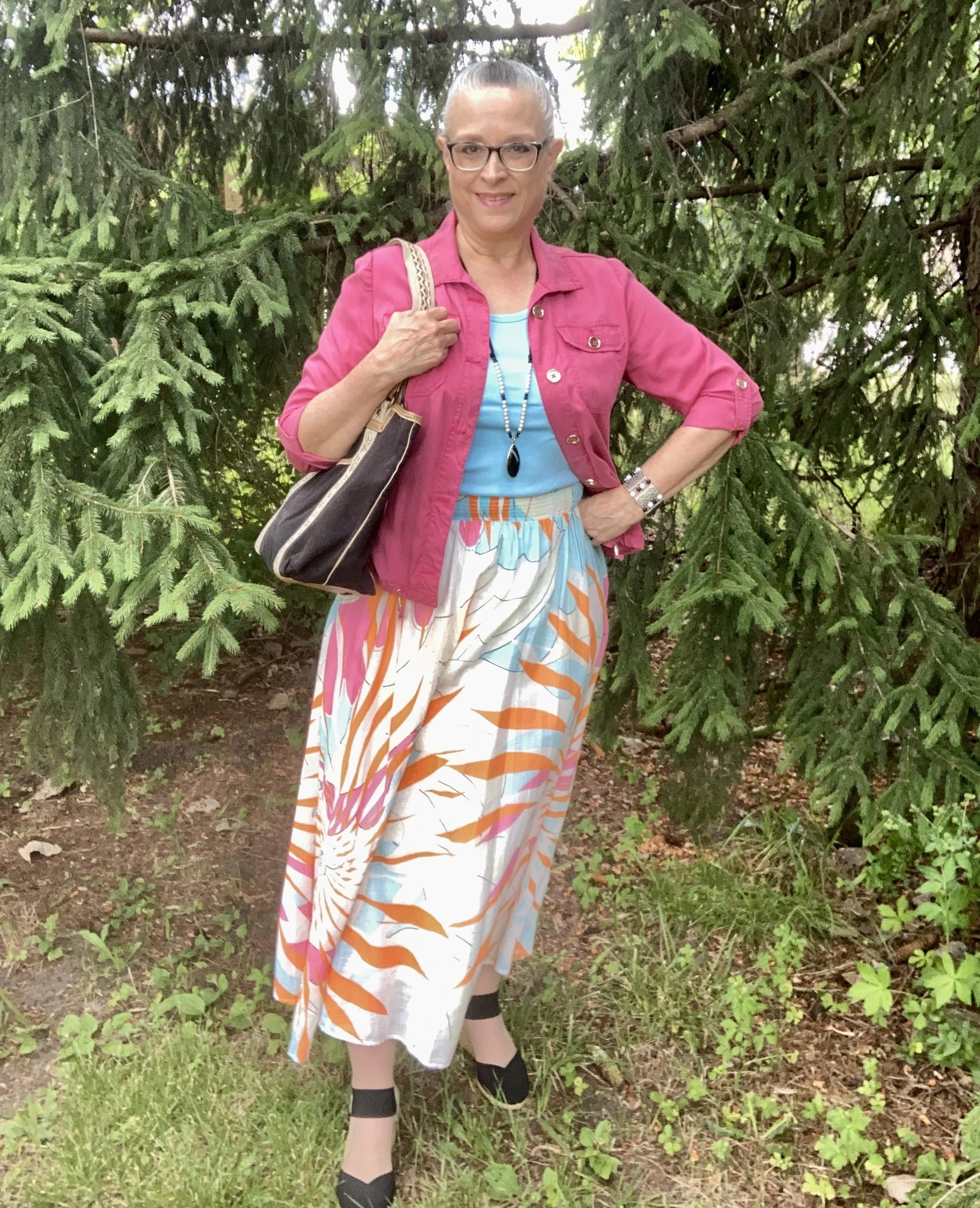 So which look do you like better? Would you have purchased a skirt like this? Do you have any skirts in your closet that you are just not sure how to style? I hope this post gave you a little inspiration for shopping your closet and thinking outside your color box.
