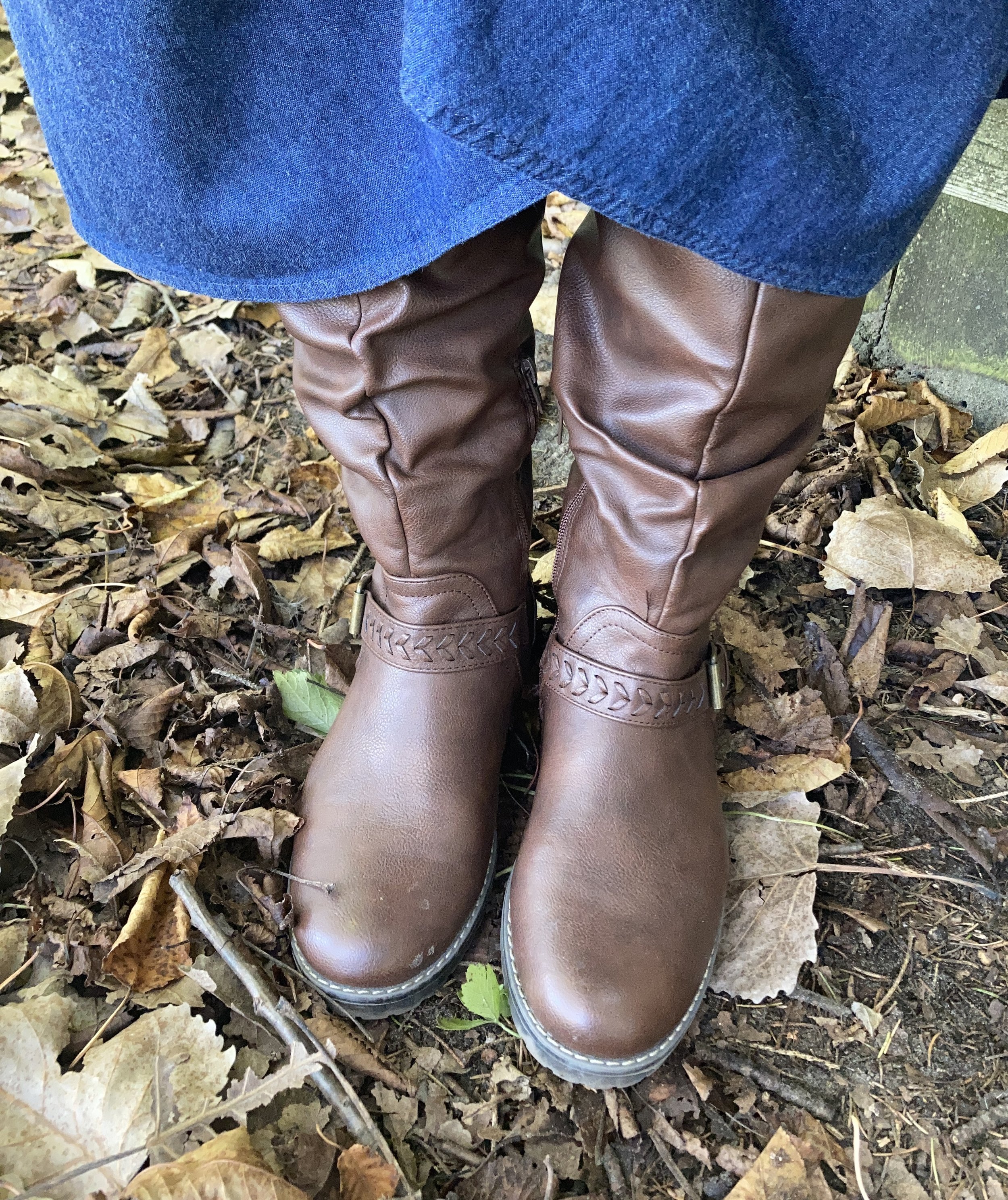 My boots are thrifted. I find a lot of boots at second hand stores when I am not looking for boots. Right now I am looking for a few new pairs of combat boots and do you think I can finding anything second hand? Nope! I also haven’t been thrifting in a while so that might be another reason. Ha. ha. These are a brand called XOXO. The are faux leather, but still look pretty good so they were a good find. Apparently, you can find this brand on Amazon.