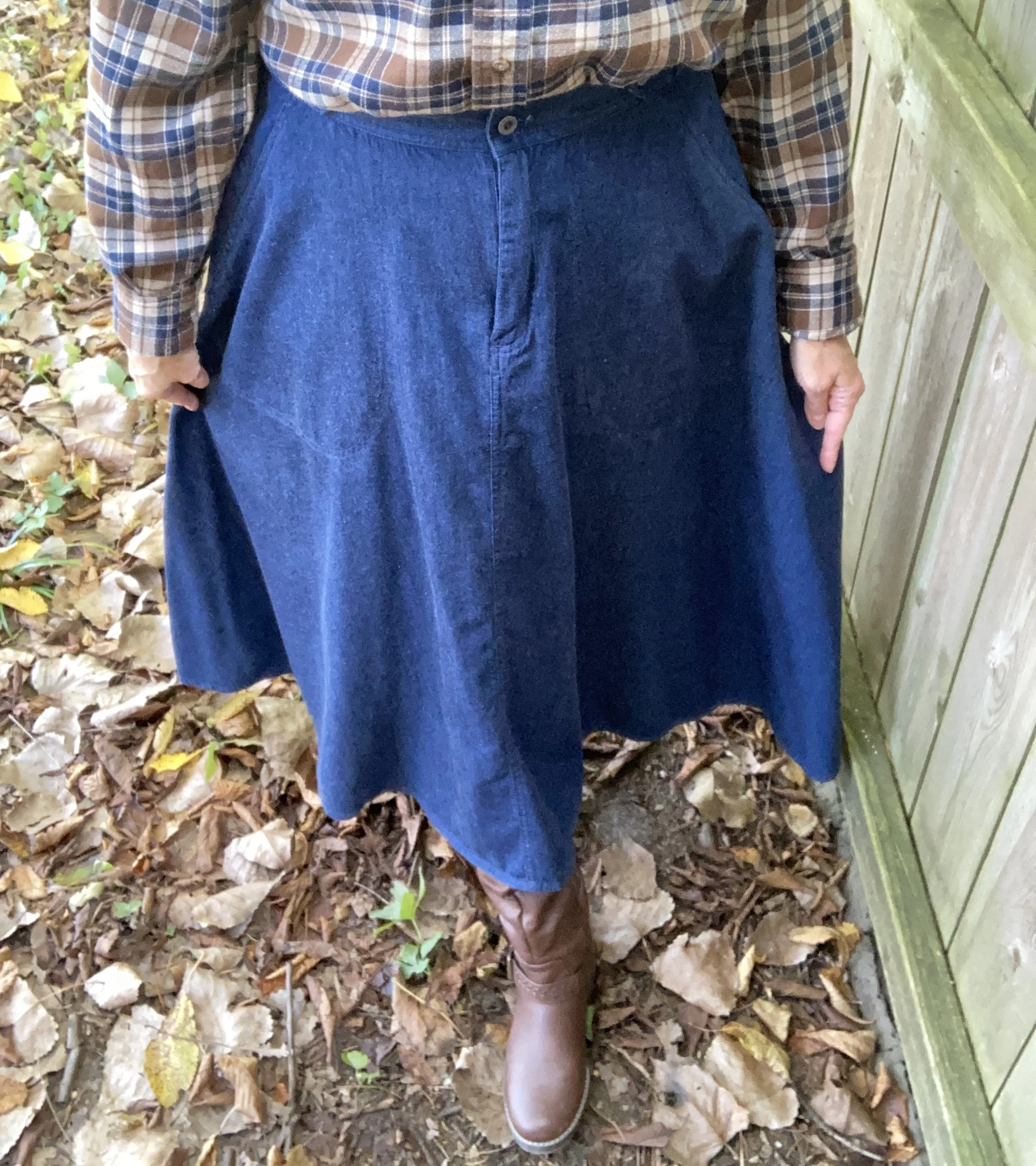 My dark wash denim skirt was a thrift find a few years ago. It is a Liz Claiborne - Liz Sport piece. What’s not to love about this full, midi length skirt? It even has pockets. It is a medium weight so easily wearable all year round, and perfectly twirl worthy. You can see this piece styled previously on the blog with a fair isle sweater, and with an olive military jacket.