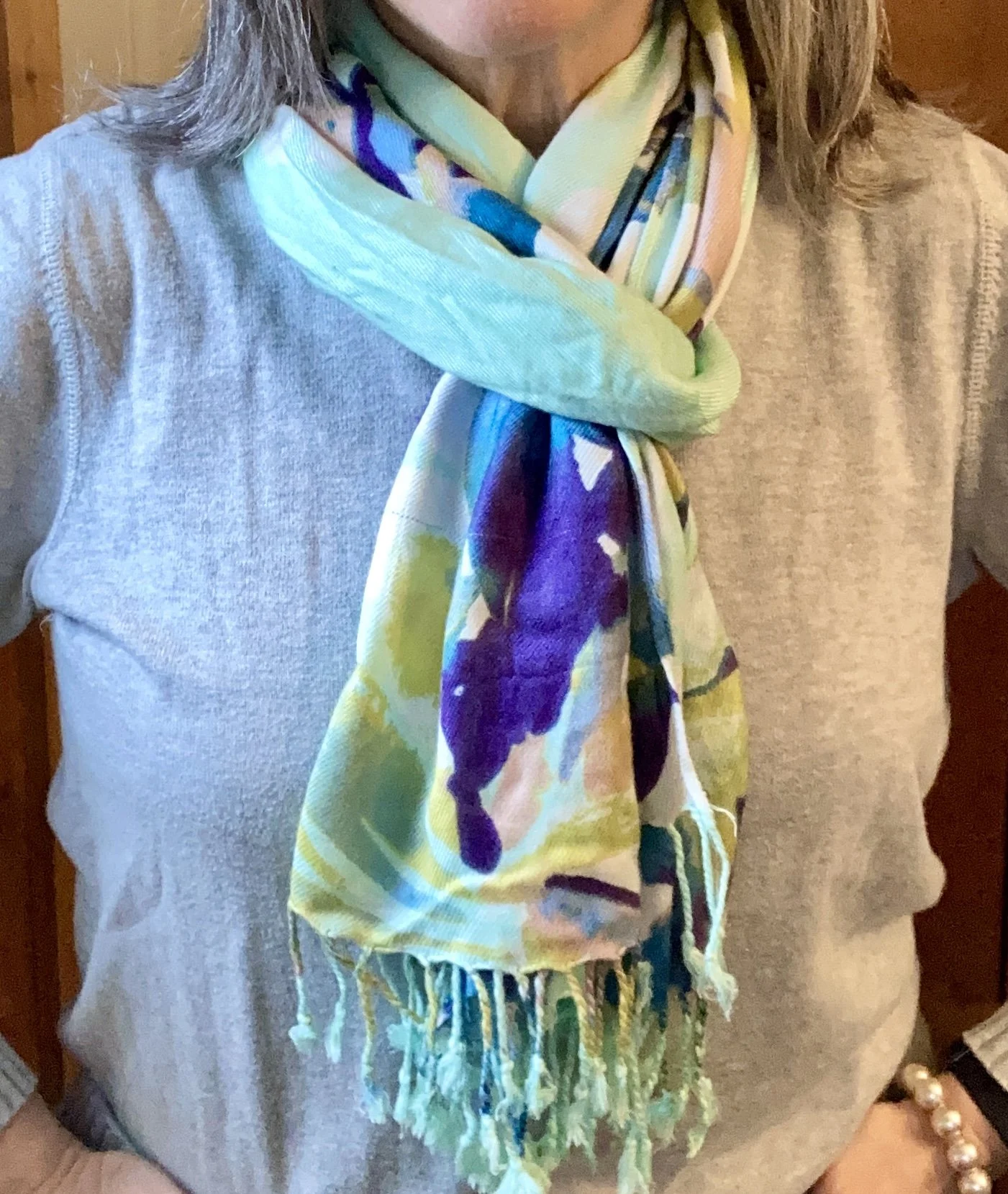 I wanted a similar scarf to the original pin with a touch of another pastel color. Theirs was more of a purply pink, so I pulled out a scarf that had the light green, but also some splashes of purple and pale pink,