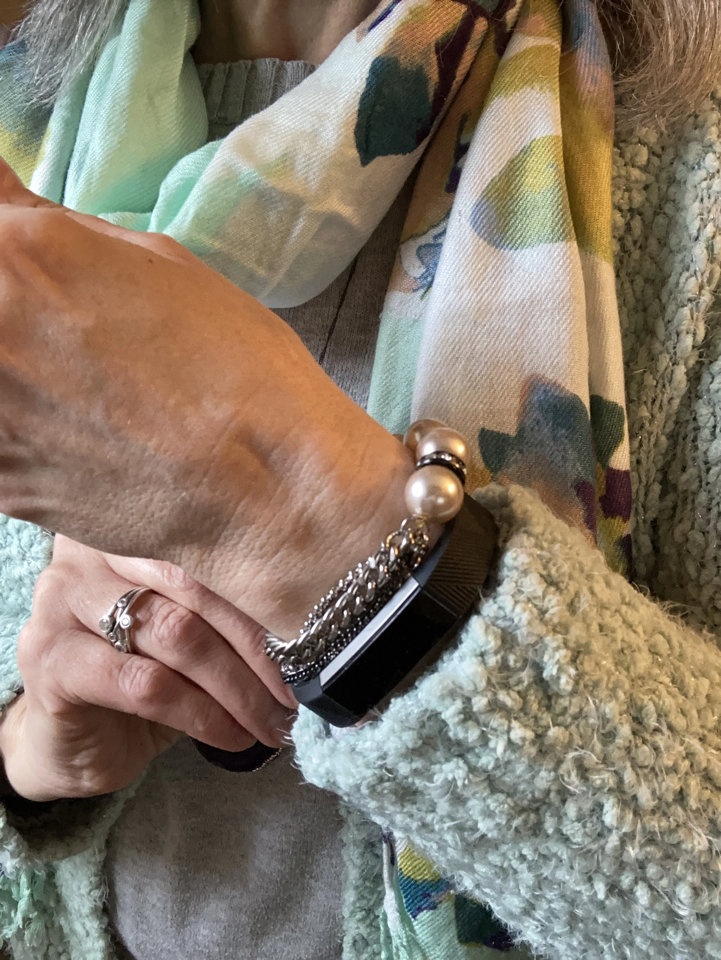 I decided to use my pastel green, open front, Christopher and Banks sweater instead of a similar colored pullover that I could have used. I love this light colored, textured piece.