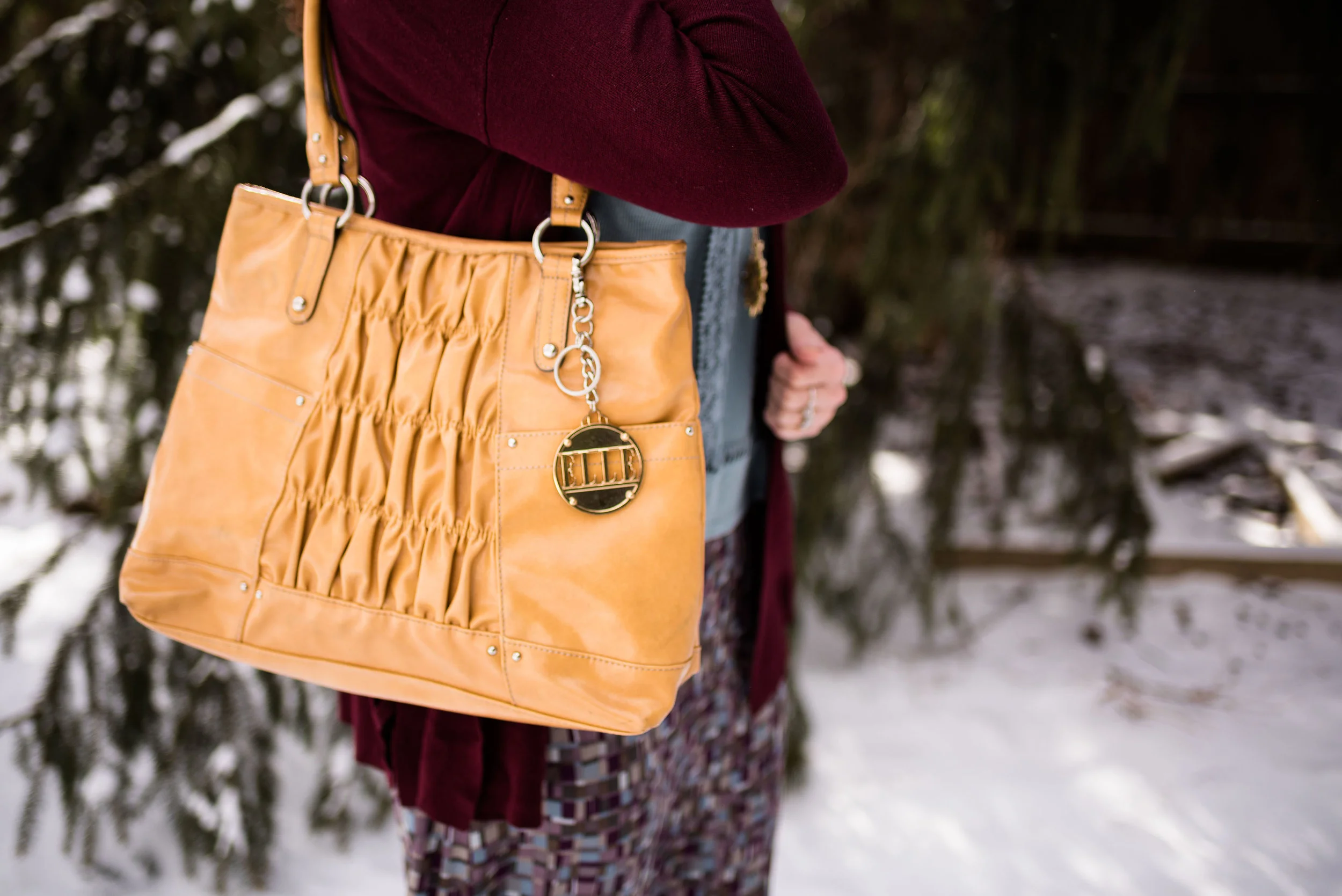 My Aldo bag is the current one I use, and was another thrift find. Sorry about the stain. I didn’t even look it over before I went outside to take pictures. I have been using this one all spring and summer.