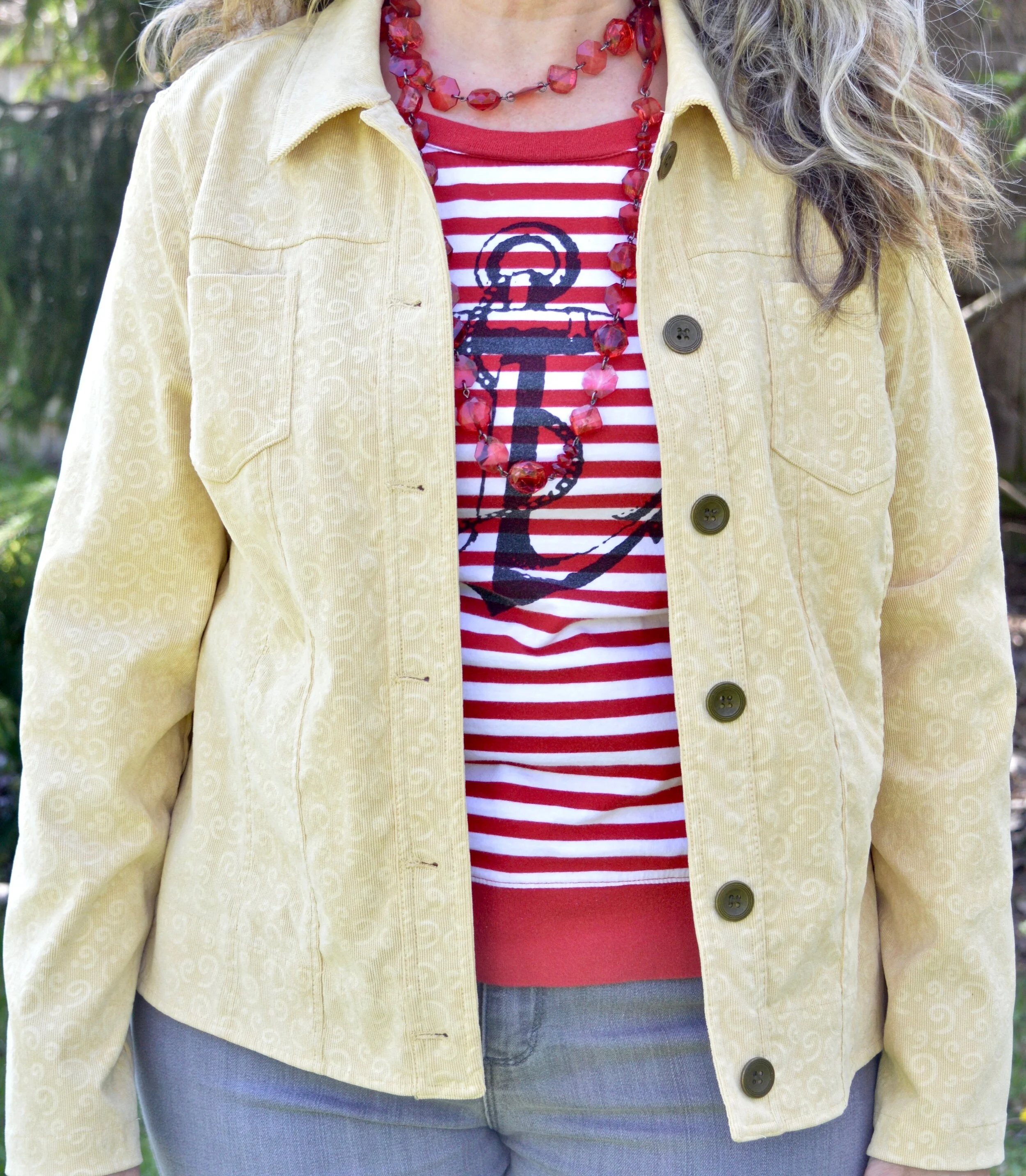 This thrifted Christopher and Banks corduroy jacket was the perfect Sunlight color. This jacket is soft, flexible, and great for those in between days when it is still cool.