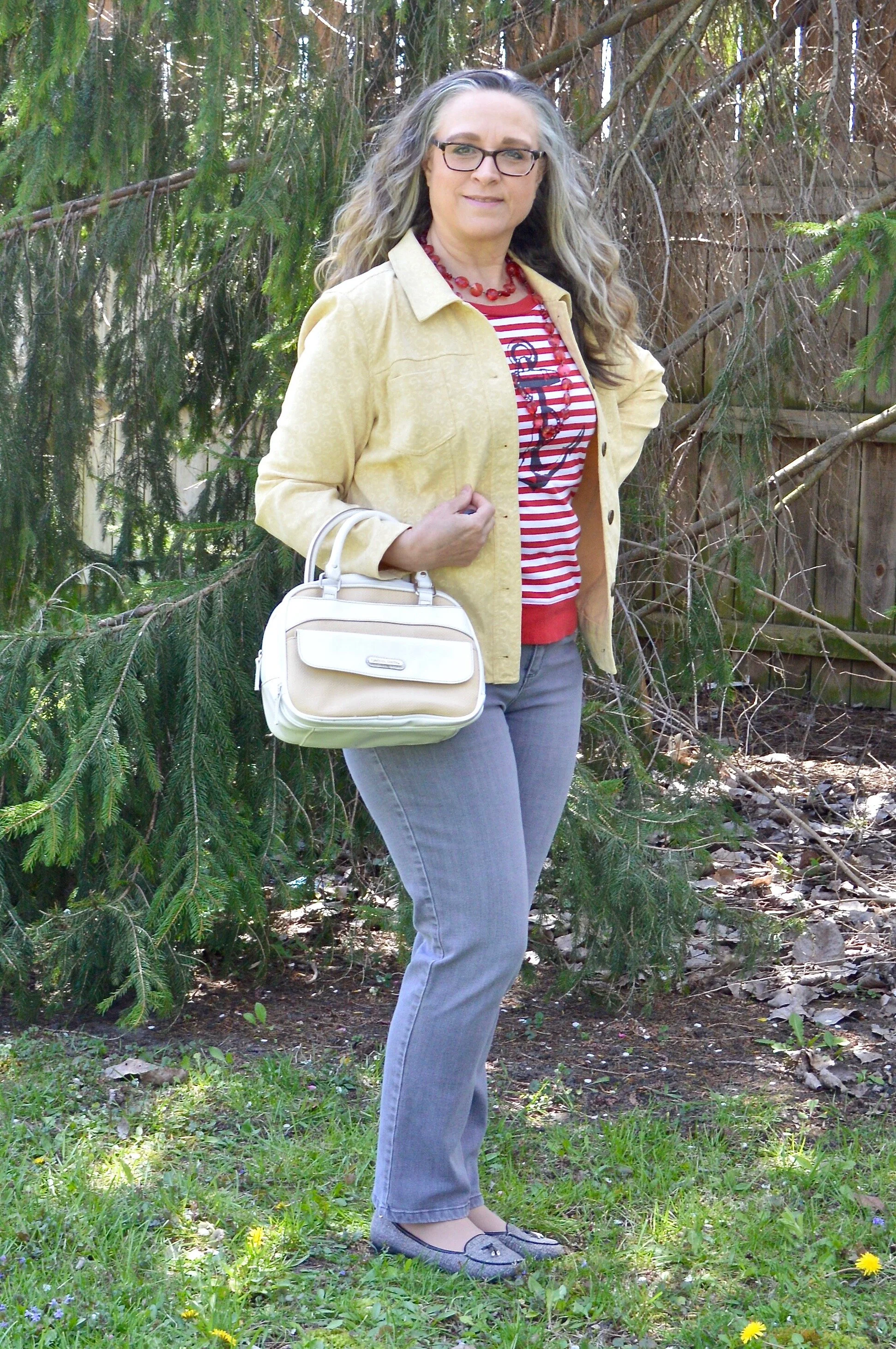 My Dana Buchman tweed loafers are making another appearance. Loafers are a great shoe for this in between time, before you really want to go out in sandals.