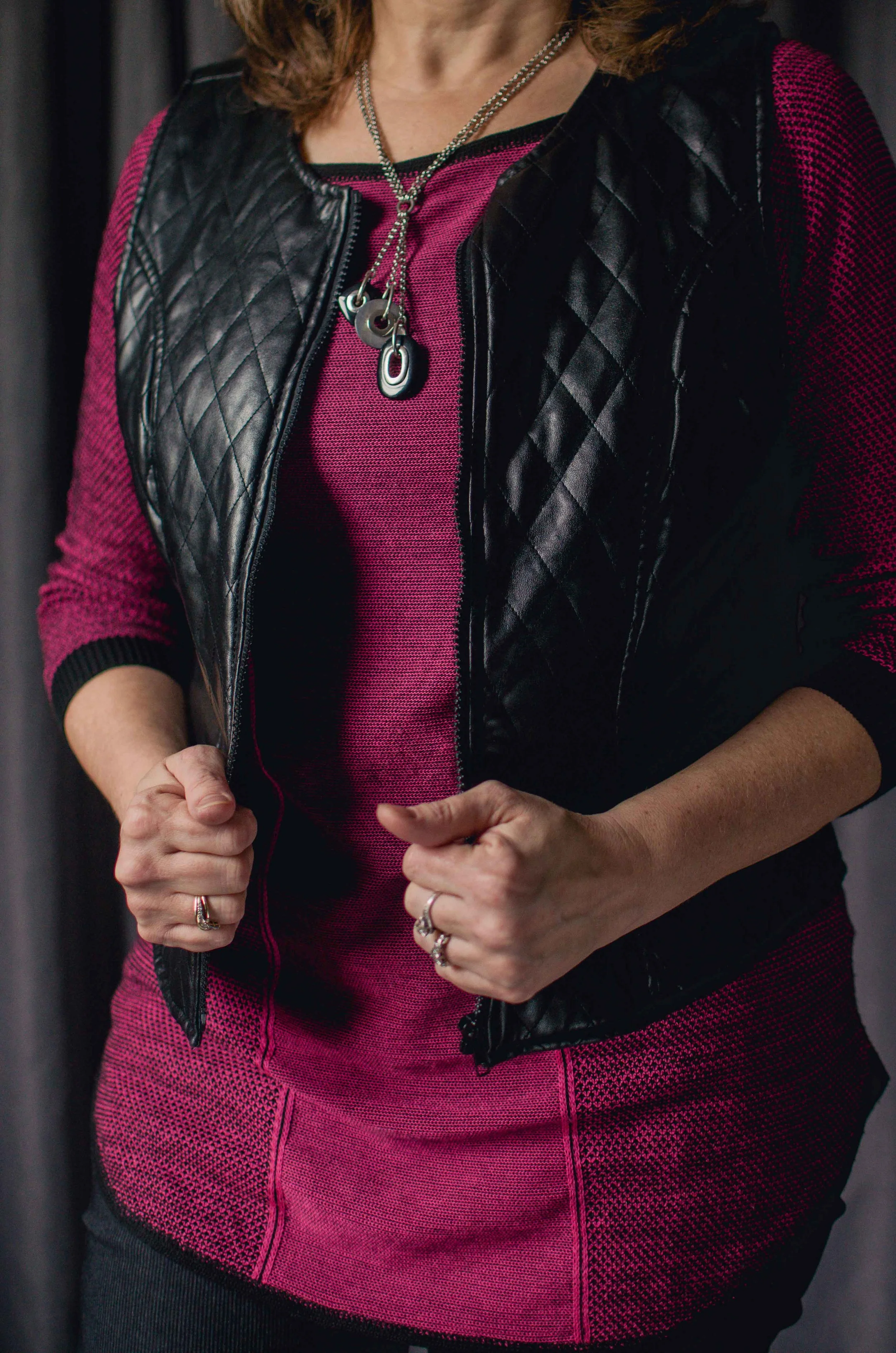 I swapped out my woven bag for a cute burgundy leather and suede shoulder bag my bestie gave me that she found thrifting. I also added my thrifted Rock & Candy by Zigi ankle boots. These are such a fun boot with the lace overlay. One of the reasons I love to thrift is finding fun, unique pieces like these boots.
