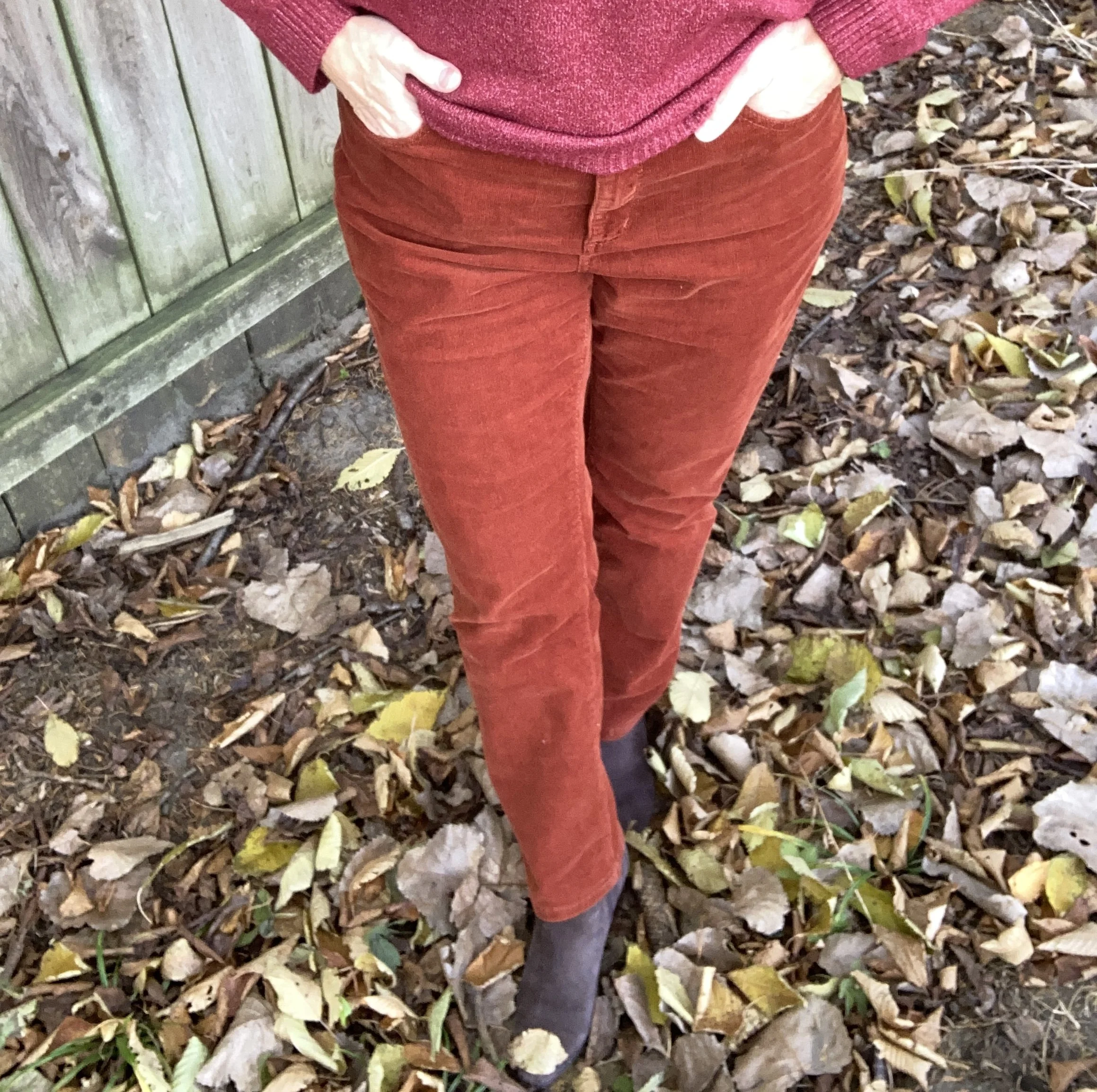Corduroy material is also on the docket this fall, and as far as I am concerned should be a fall and winter staple. It is a lovely fabric that adds extra warmth due to the waling. A narrow wale will give a more luxurious look, while a wide wale is more casual. I found these last year on Black Friday at JCPenney. I love the color and the fit. These are St. John’s Bay brand.