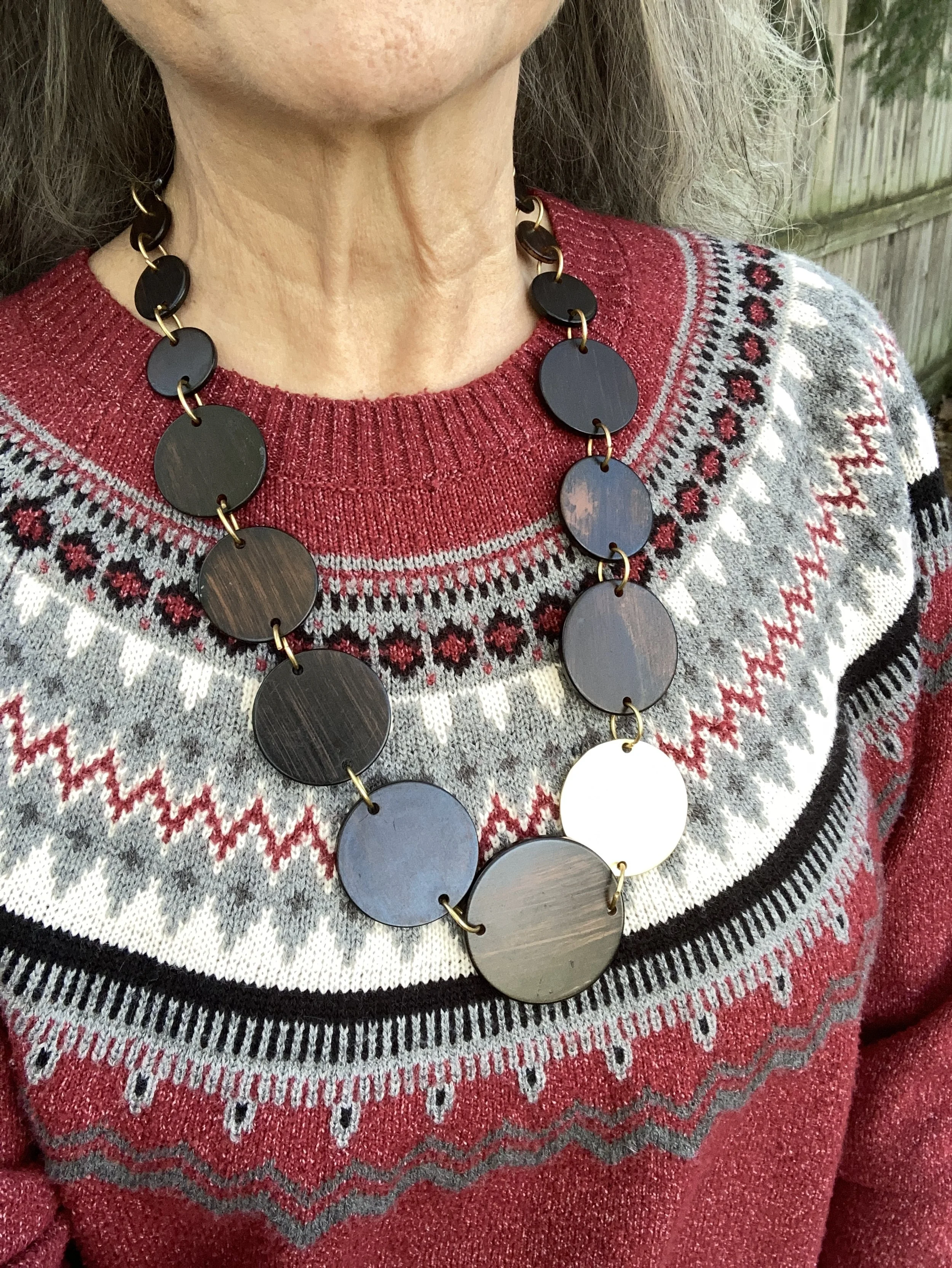 The only thing I added to this look was the large, wooden circle bead necklace, which I thought tied the whole vibe together.