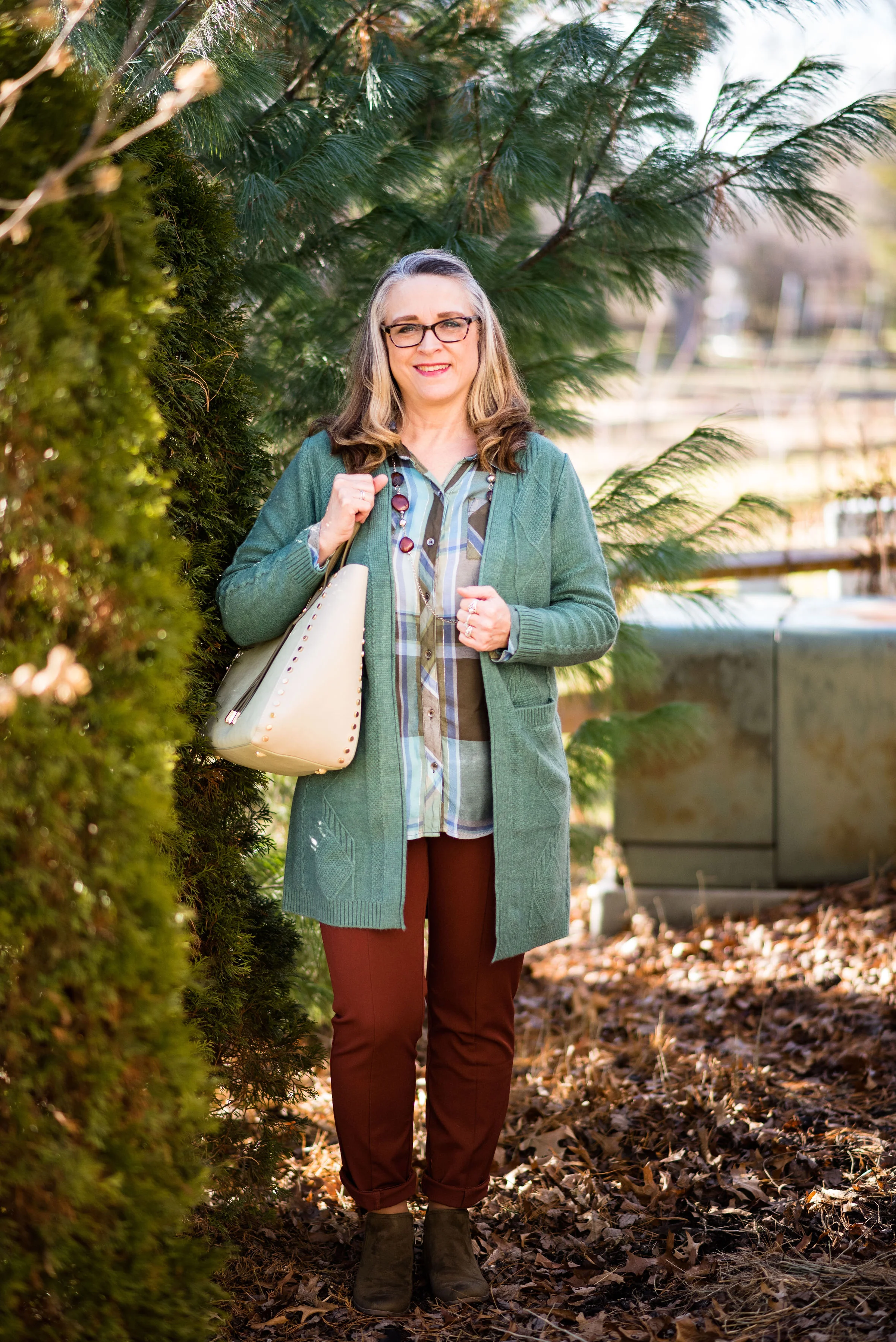 These Baretraps boot from DSW first made their appearance on the blog last fall. You can see that post here. I love having a variety of boots and these with their slouchy fronts, spat-type appearance and wood stacked heels are just plain fun. However, I don’t think they were the best choice for this outfit. Maybe a pair of my suede ankle boots or even some sneakers would have been a better choice. What do you think?