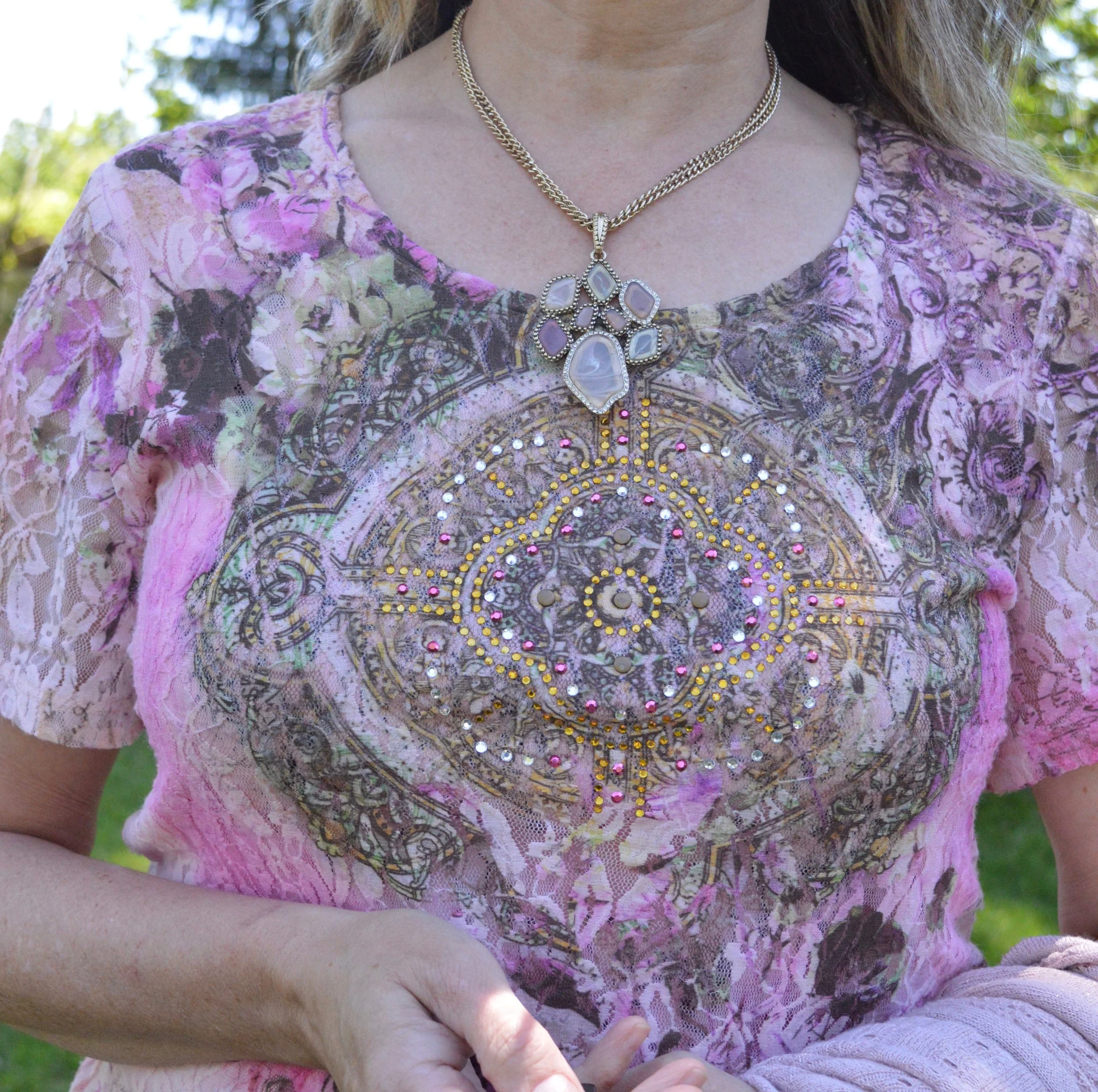 I also wore my stained glass necklace as I thought the colors went well with the top.
