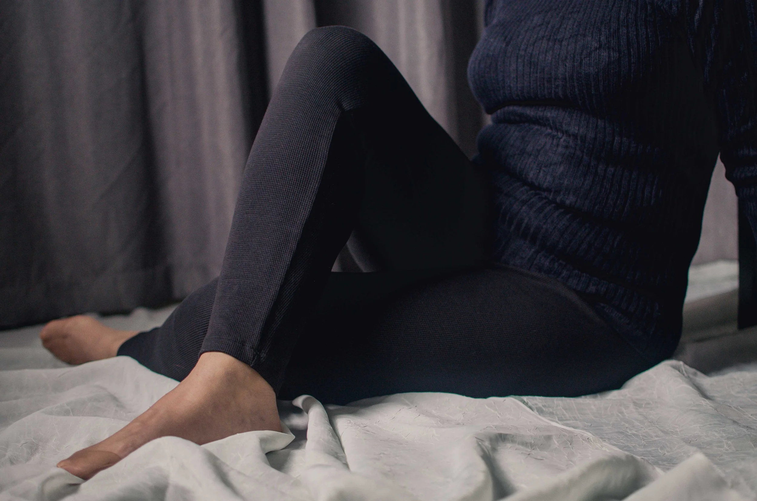 Finally, we need to have a few bottoms. Slacks, leggings (as seen above) or narrow leg trousers are just a few of the options available to cover our lower selves when the weather is cold. I love to dress in skirts as well, and we'll talk more about those in a future post.